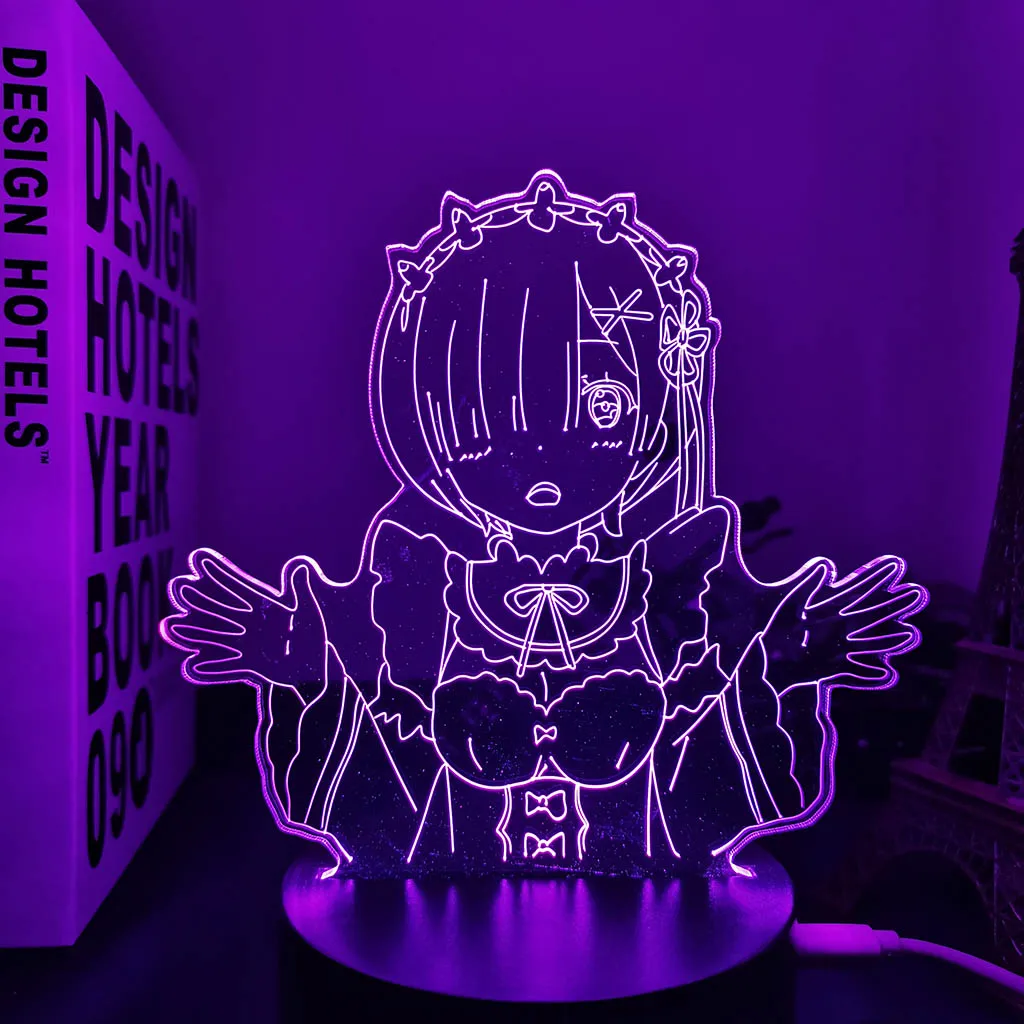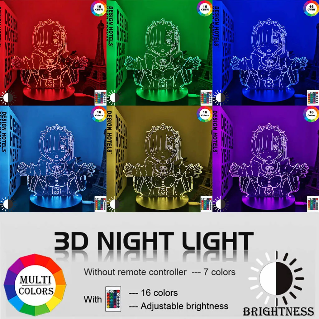 Светодиодный ночсветильник с рисунком аниме Re Zero, спуск жизни в другом мире, ночсветильник для спальни, Декор, подарок на день рождения, 3d лампа Re Zero Rem