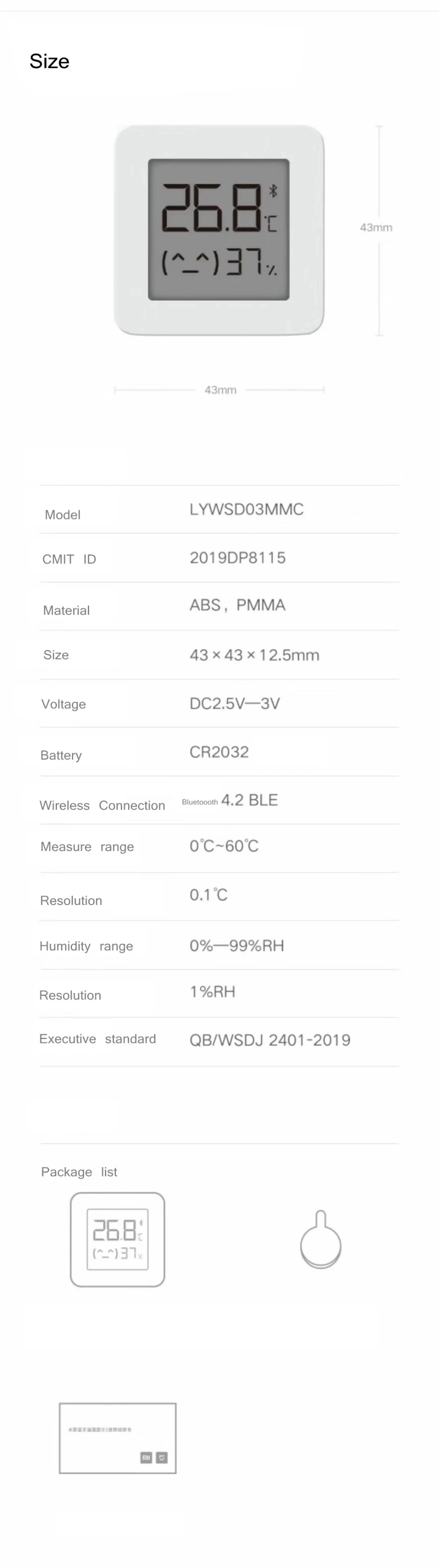 100% оригинал Особенности: 1. Домашний гигрометр, данные могут четко считываться с различной яркостью и углом. 2. Высокая чувствительность и точный сенсирион из Швейцарии, почувствуйте тонкое изменение температуры и влажности на дыхание. 3. Выражение для прописи над уровнем комфорта, милый и простой. 4. Экран с низким потреблением энергии, батарея с кнопкой CR2032 на один год. 5. Встроенный усовершенствованный датчик температуры и влажности Sensirion, точность температуры: 0,1 градусов, точность влажности: 0,1 процентов RH 6. Через приложение Mi для переключения на hu mi difier, когда температура hu mi в помещении слишком низкая, а кондиционер воздуха при высокой температуре в помещении СВЕТОДИОДНЫЙ цифровой дисплей, вы можете легко получить температуру, влажность Посылка входит: 1 x Термометр-Гигрометр Xiaomi Mijia Настенный стикер 1 шт. 1 x Руководство пользователя