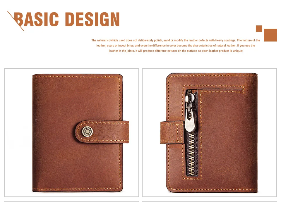 Мужские кошельки KAVIS из воловьей кожи, Короткие Бумажники на молн...