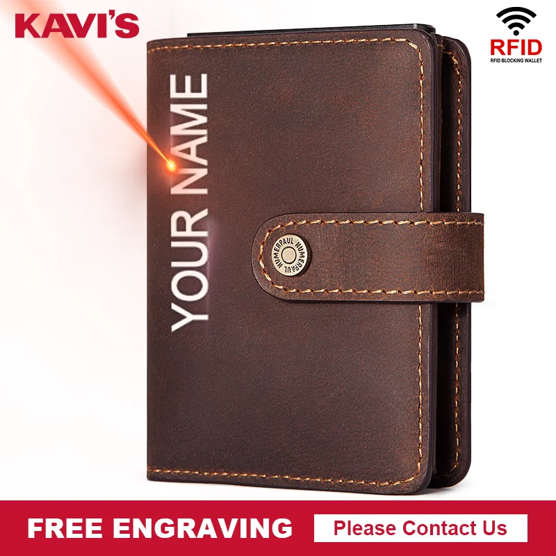 KAVIS 100% натуральная кожа Rfid бумажник для мужчин Crazy Horse кожа женские кошельки Высокое качество гравировки Короткий Мужской кошелек для денег сумка мини для маленьких мальчиков