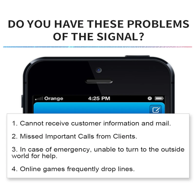Простота установкиОбычно частота составляет 2G + 3G + 4G полное покрытие.Усилитель сигнала может улучшить сотовый телефон 4G singal.Частота Тис обычно используется в России, Украине, Испании, Франции, Европе и т. Д.Если частота не правильная, усилитель сигнала не может работать.Пожалуйста, проверьте частоту вашего оператора перед размещением заказа.