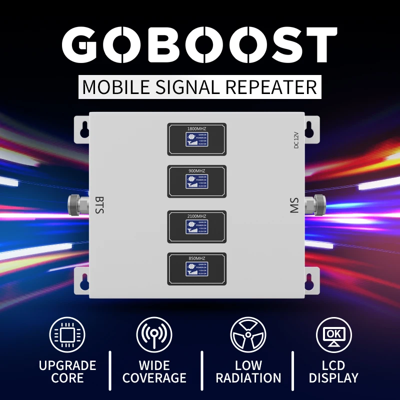 GOBOOST четыре диапазона 2G 3G 4G Celluar усилитель 800 850 900 1800 2100 2600 Mhz усилитель сигнала сотового телефона 70 дБ сетевой Reapeater