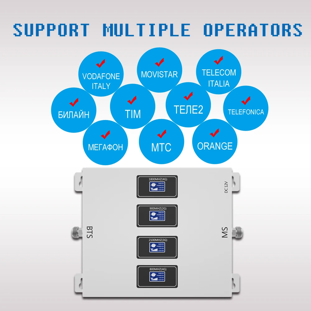 Посылка =800 МГц + 900 МГц + 1800 МГц + 2100 МГцЧетырехдиапазонный усилитель сигнала * 1/850 МГц + 900 МГц + 1800 МГц + 2100 МГцЧетырехдиапазонный усилитель сигнала * 1/900 МГц + 1800 МГц + 2100 МГц + 2600 МГцЧетырехдиапазонный усилитель сигнала * 1+ Источник питания EU/AU/UK/US * 1