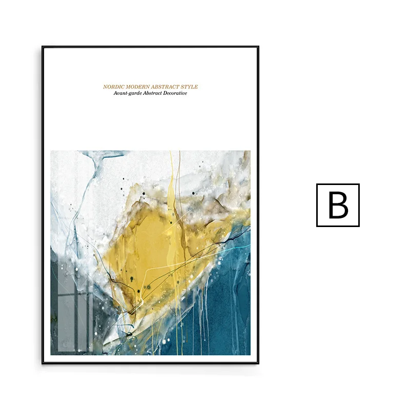 Красочная желтая, белая, синяя граффити, пейзаж, Мраморная текстура, холст, живопись, Настенная картина, печать, постер, украшение для гостиной