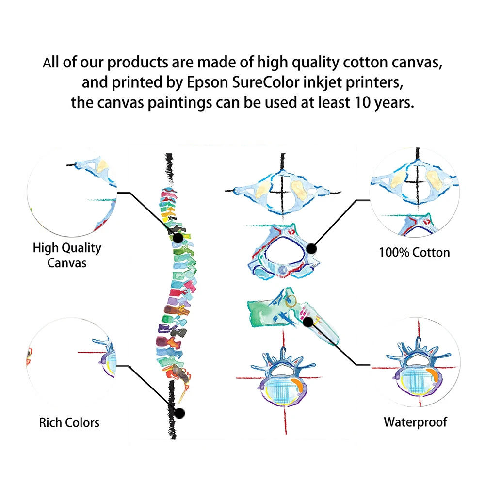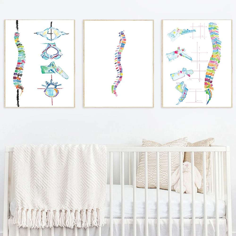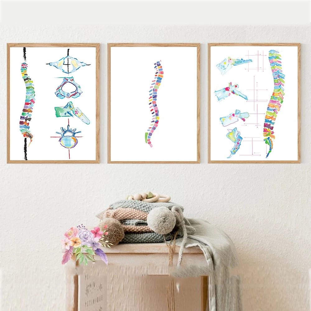 Акварельные цвета позвоночника анатомический плакат медицинский холст живопись Хиропрактик настенные художественные фотографии для физиотерапевта комнаты печать дома декоративные