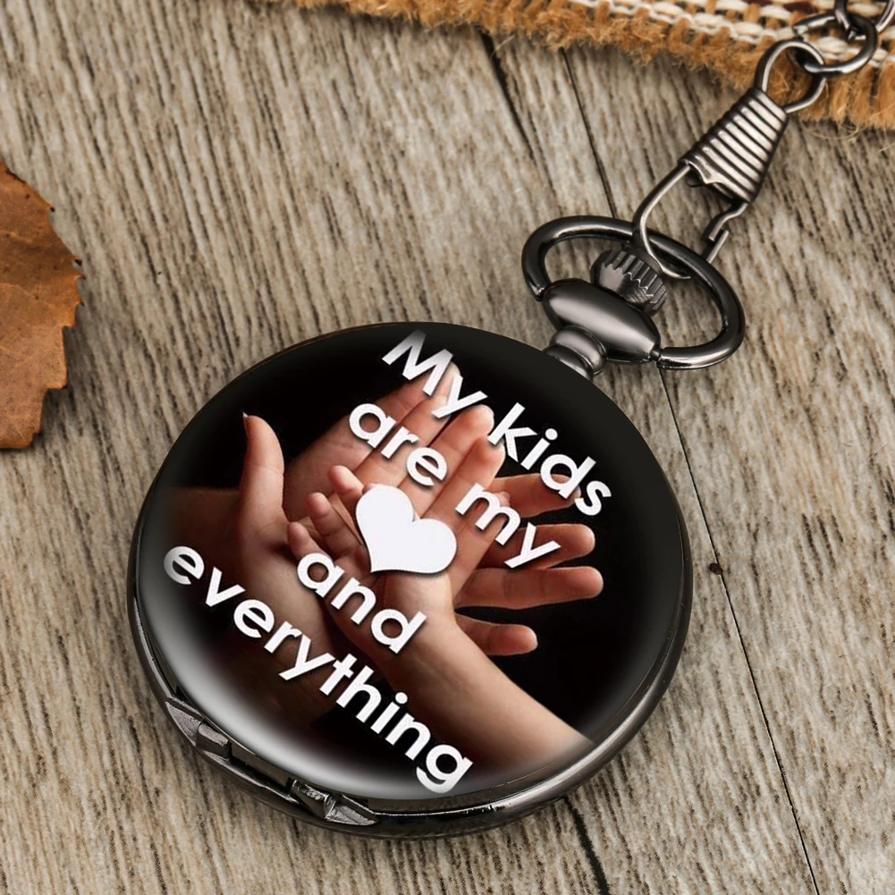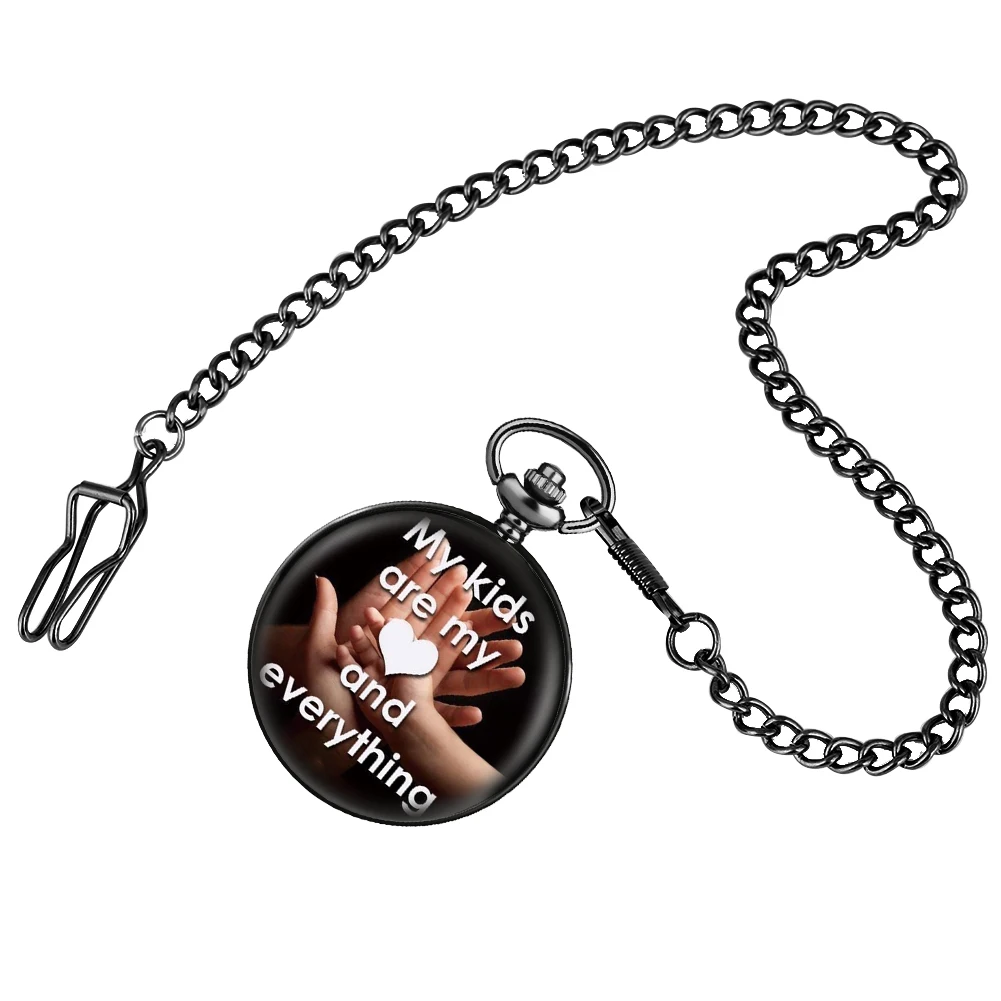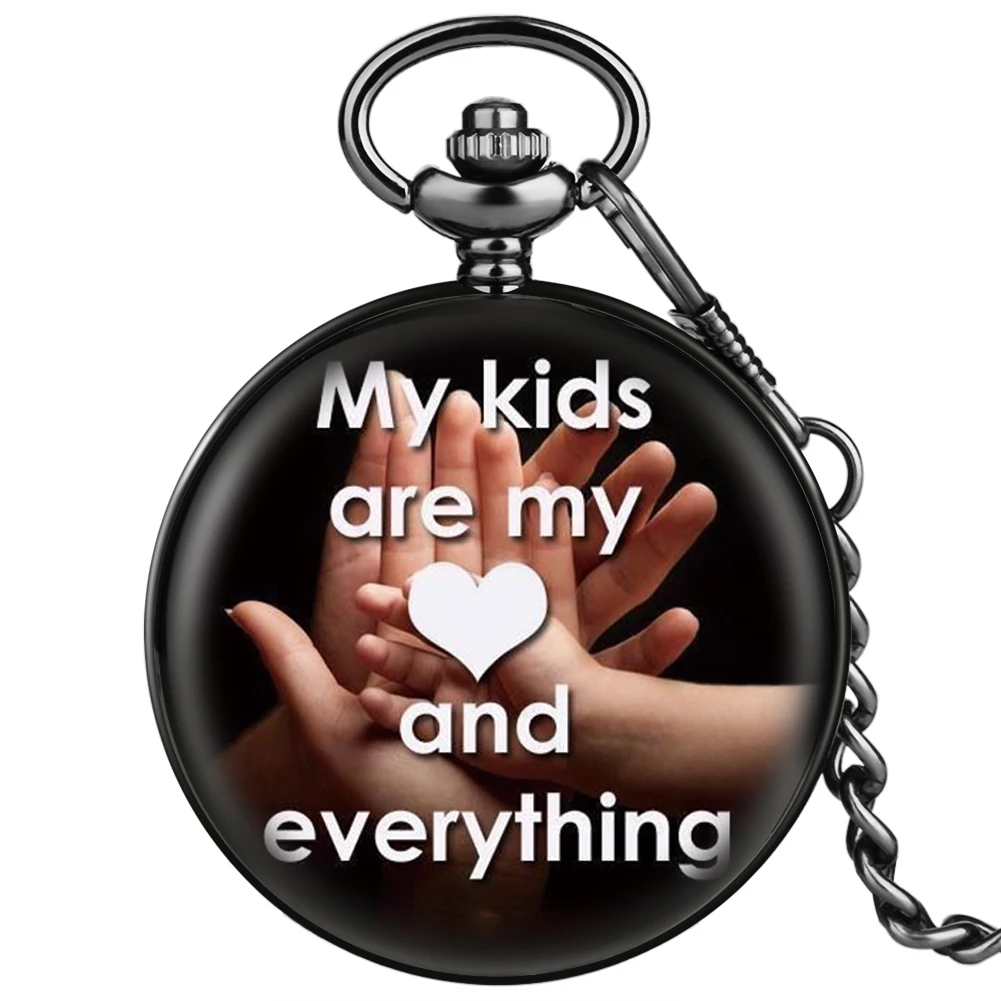 Карманные часы с шикарным рисунком My Kids Are My Love And Everything Black, циферблат с цифрами, переносная цепочка, подвеска, подарок для детей