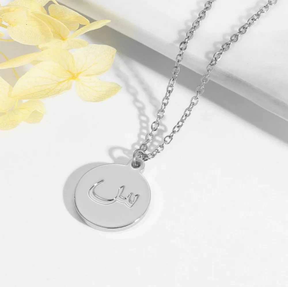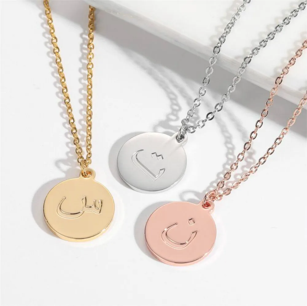 Ожерелье с глубокой гравировкой и арабскими буквами для женщин, золотой чокер, цепочка, ожерелье, персонализированная подвеска в виде монеты, подарок из нержавеющей стали