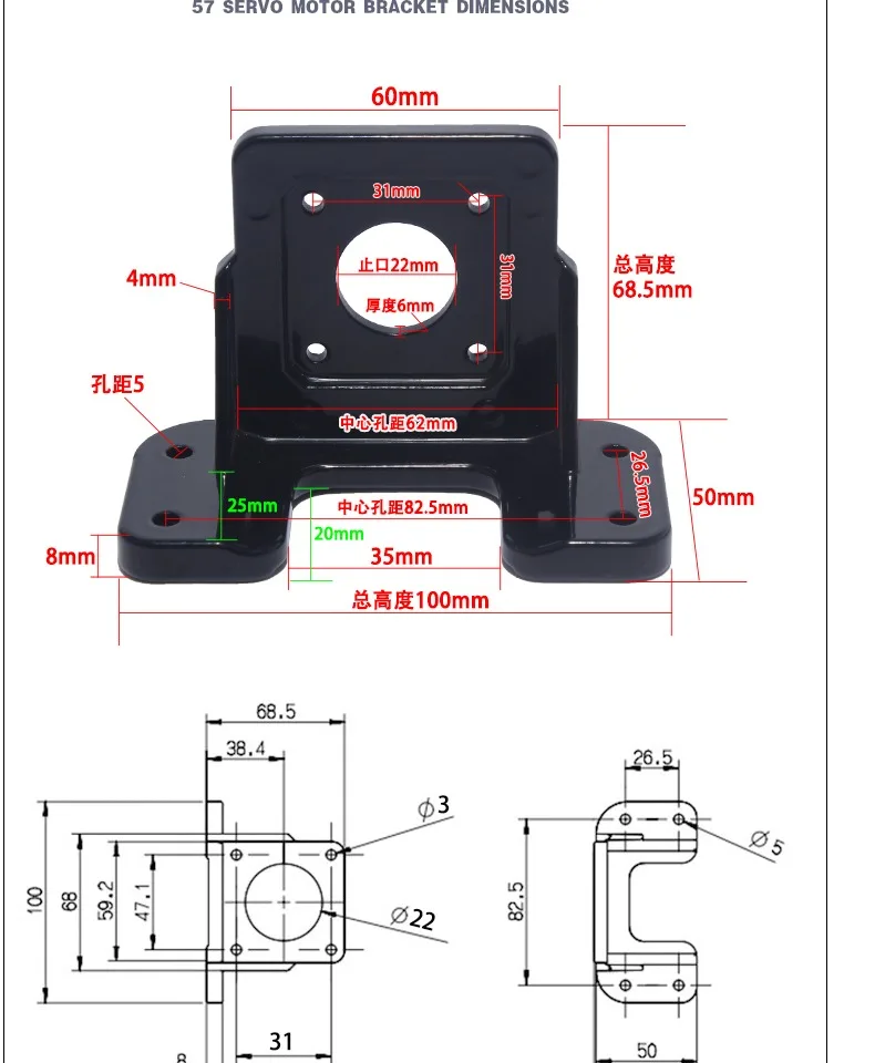 Кронштейны для шагового серводвигателя 42 57 60 80 86 90 110 ...