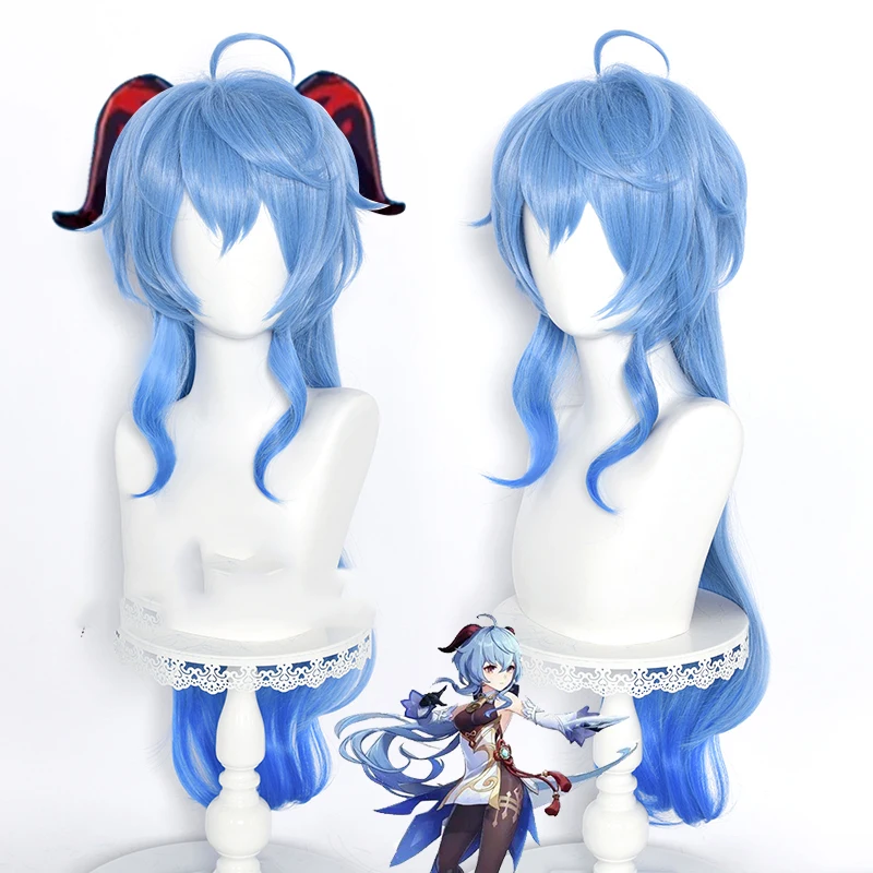 Genshin воздействия ганю парик Косплэй градиентный синий длинные пр...