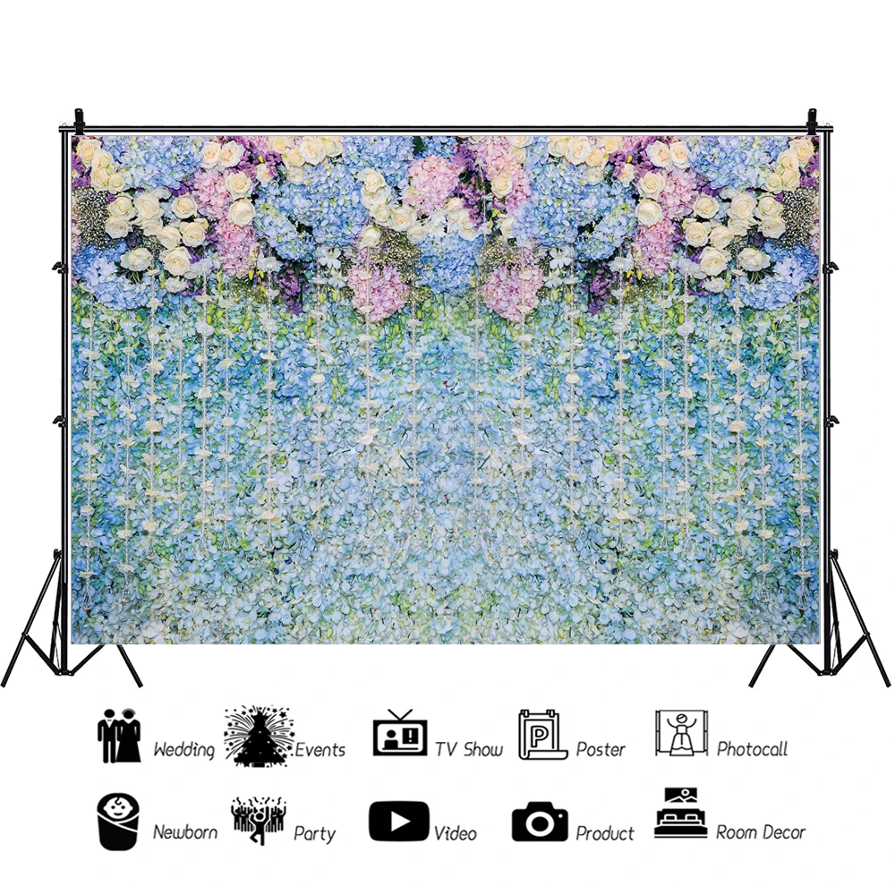 Фоны Laeacco для свадебной фотосъемки с голубыми цветами на стену для новорожденных на день рождения