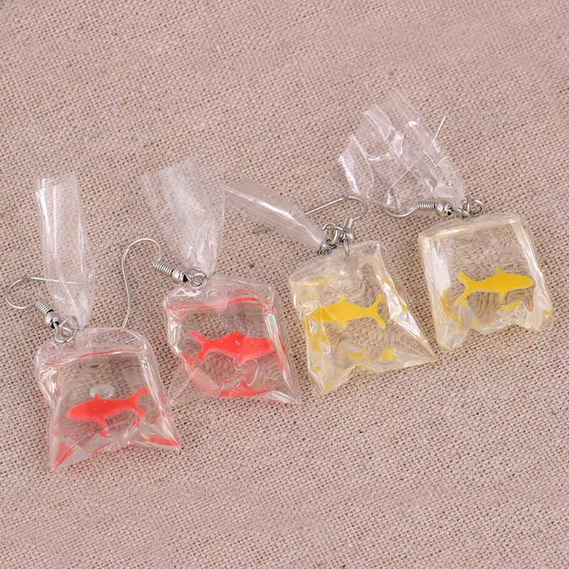 Серьги-Подвески ручной работы женские, модные креативные серьги-мешочки с золотыми рыбками, мешочком для воды, милые ювелирные украшения ручной работы, 2 шт.