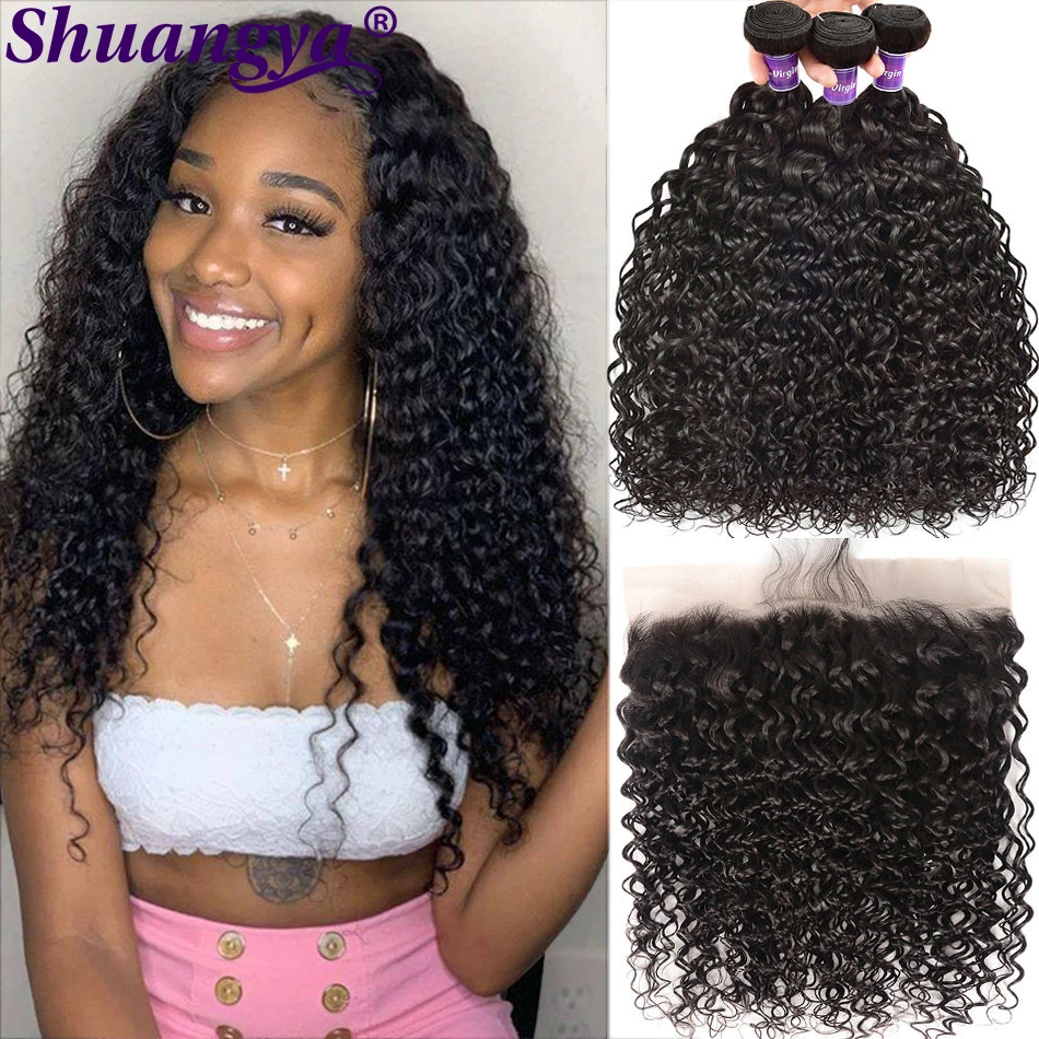 Свободные глубокая волна пряди с фронтальной перуанские волосы пряд...