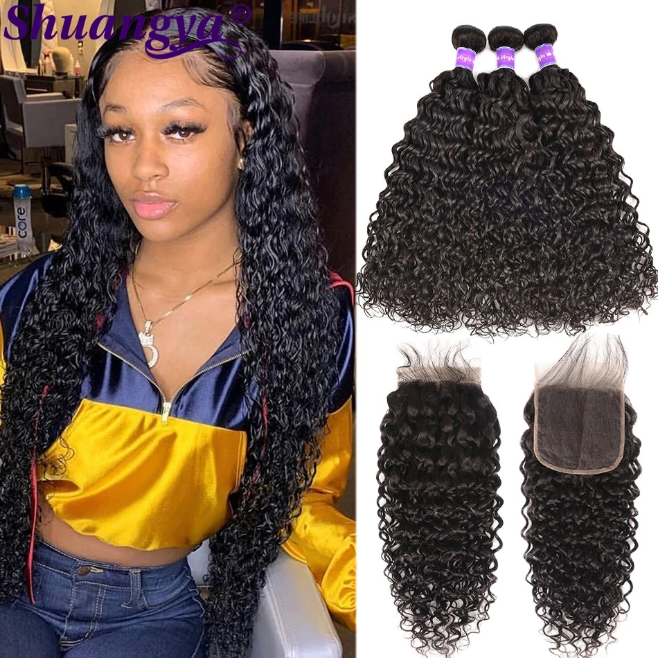 Индийские волнистые волосы пряди с закрытием 100% человеческих воло...