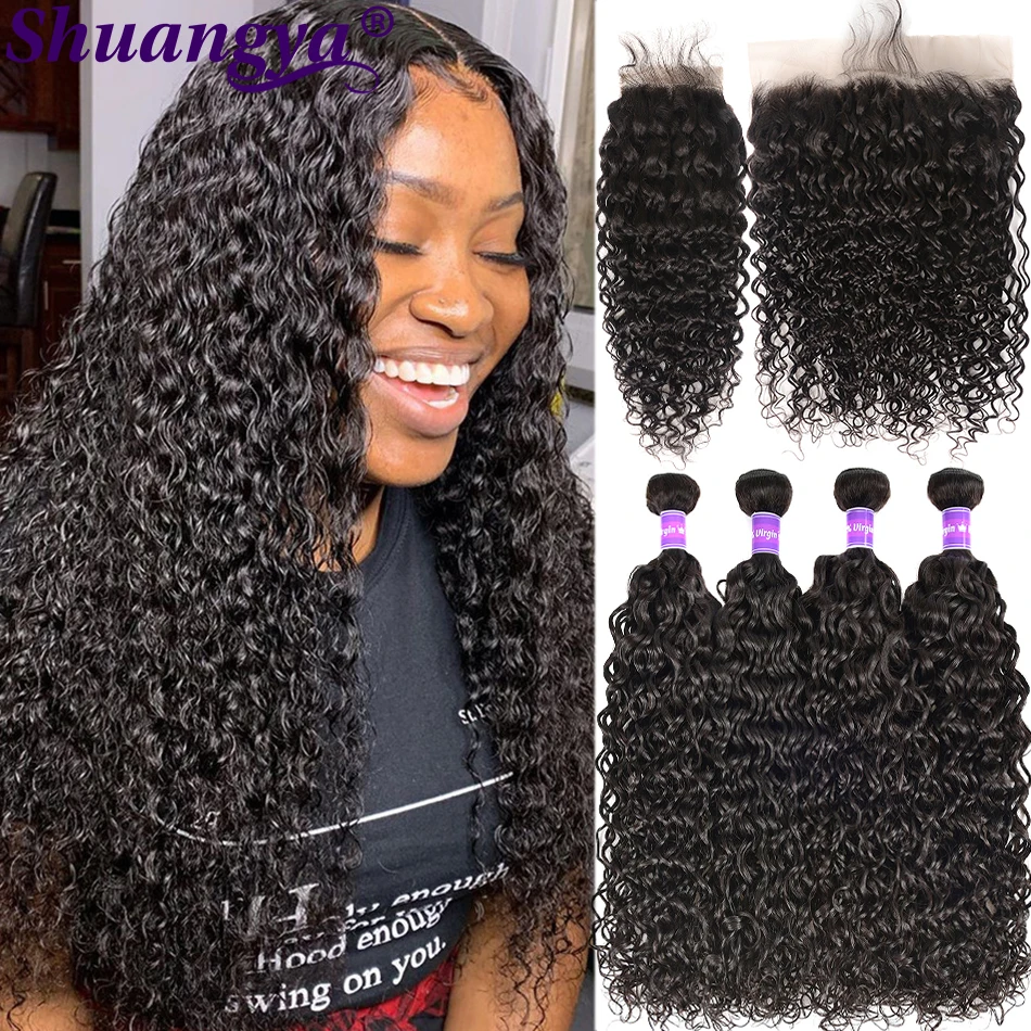 Прозрачные кружевные кудрявые пучки волос с фронтальной 100% Реми ч...