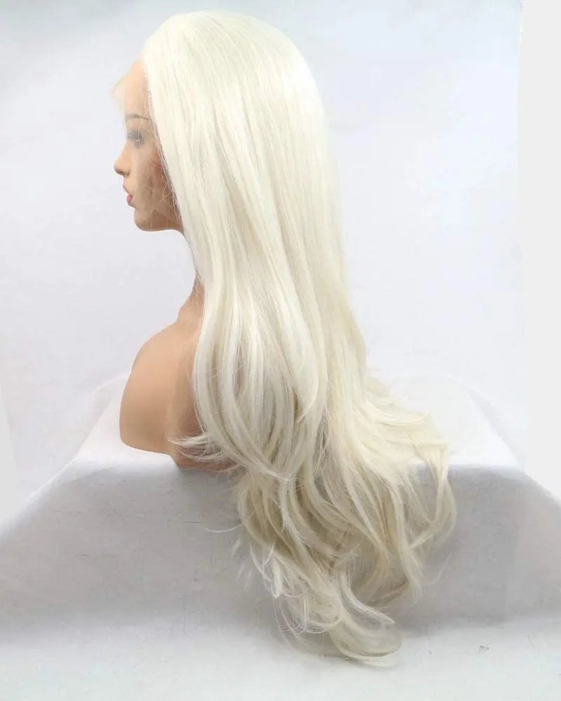 Серебристый Платиновый светлыйБелый синтетический кружевной передний волнистый парик Сменные парики термостойкие волоконные длинные волнистые