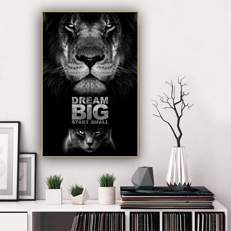 Мотивационные художественные картины с изображением животных, черные плакаты и принты, настенные картины для гостиной, домашний декор