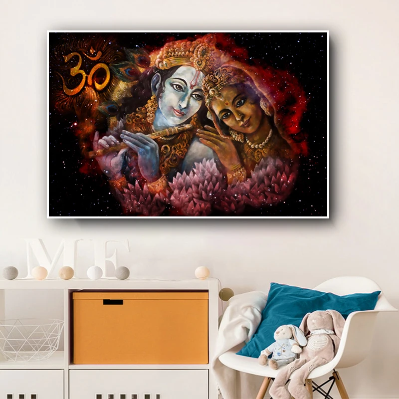 Пара Кришна и Радха Художественная Картина на холсте индийские плакаты принты современная картина на стену для гостиной спальни домашний декор