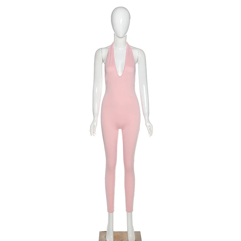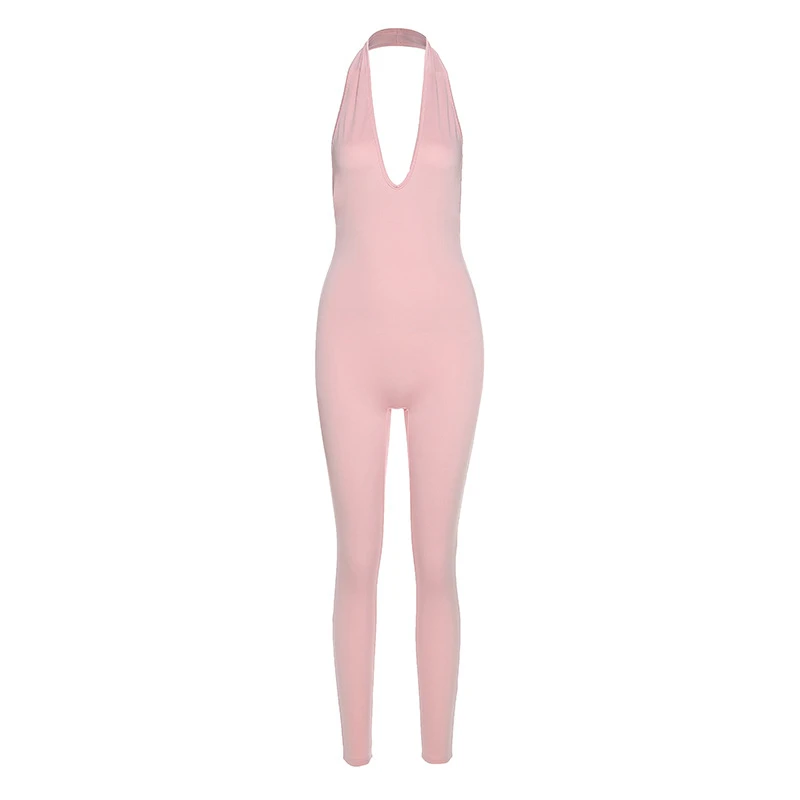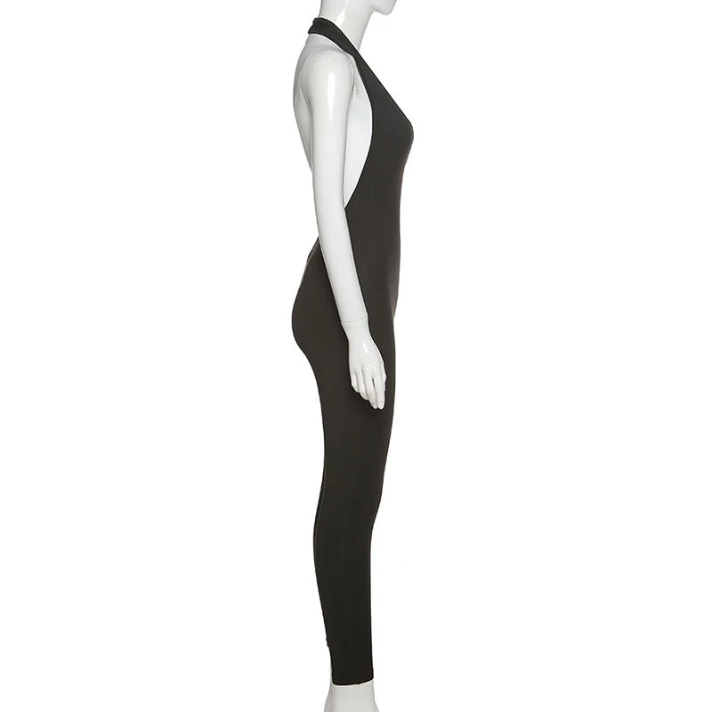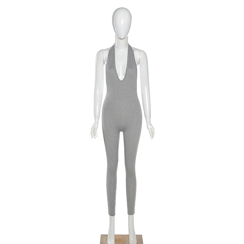 Женский Облегающий комбинезон с открытой спиной и V-образным вырезом