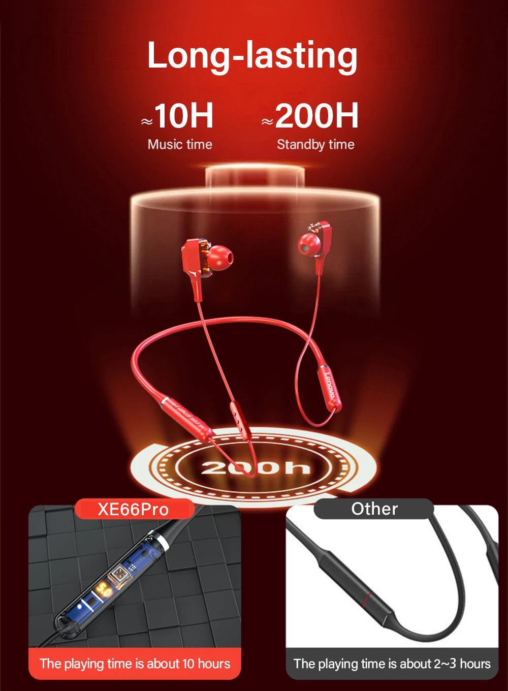 Беспроводные наушники Lenovo XE66 Pro, Bluetooth 5,0, 4 динамика, длительное время работы в режиме ожидания, водонепроницаемые наушники с двойным динамическим ремешком на шее