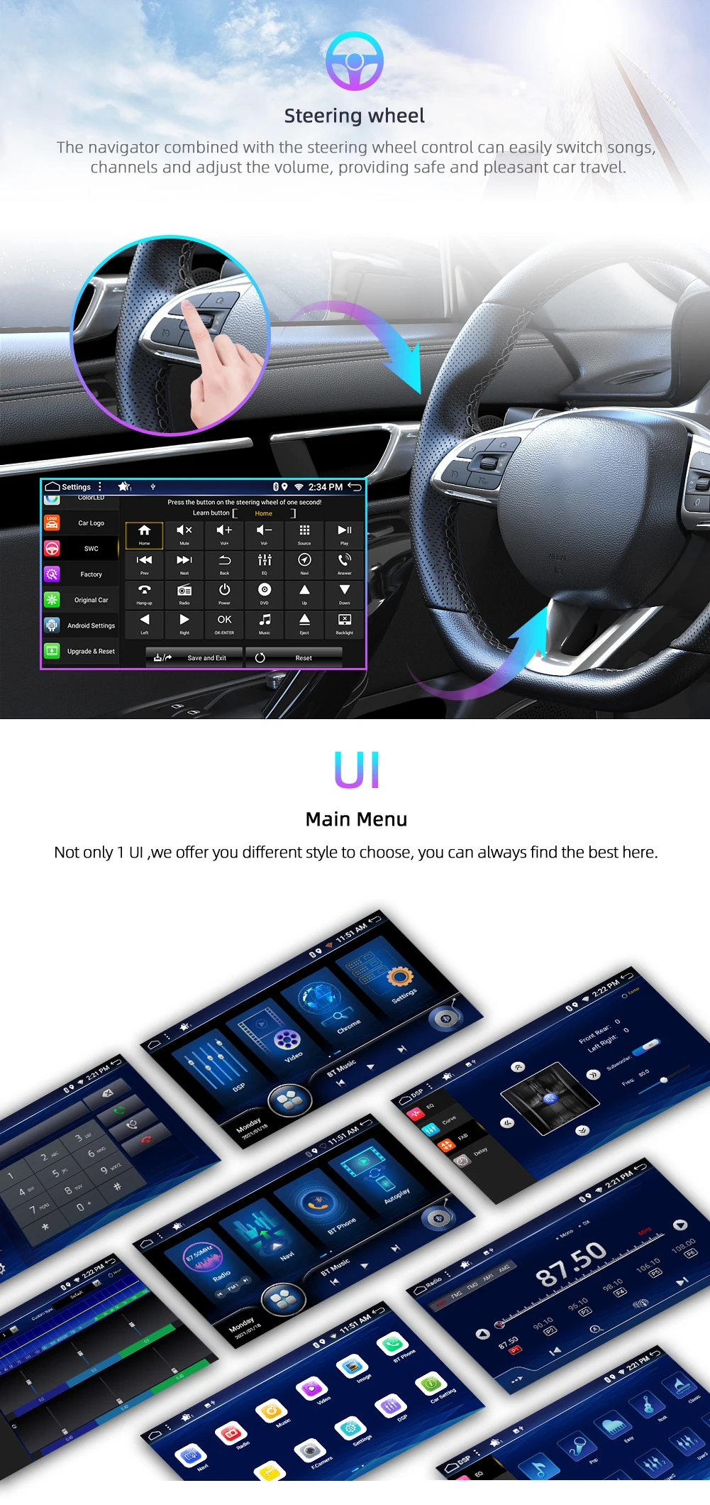 ▲Поддержка Dab + Радио, зеркальная ссылка и оригинальная функция управления рулевым колесом автомобиля, USB & micro SD до 500 Гб, встроенный WiFi Интернет, Google Maps онлайн навигация, Бесплатная автономная навигация по карте, магазин Google Play