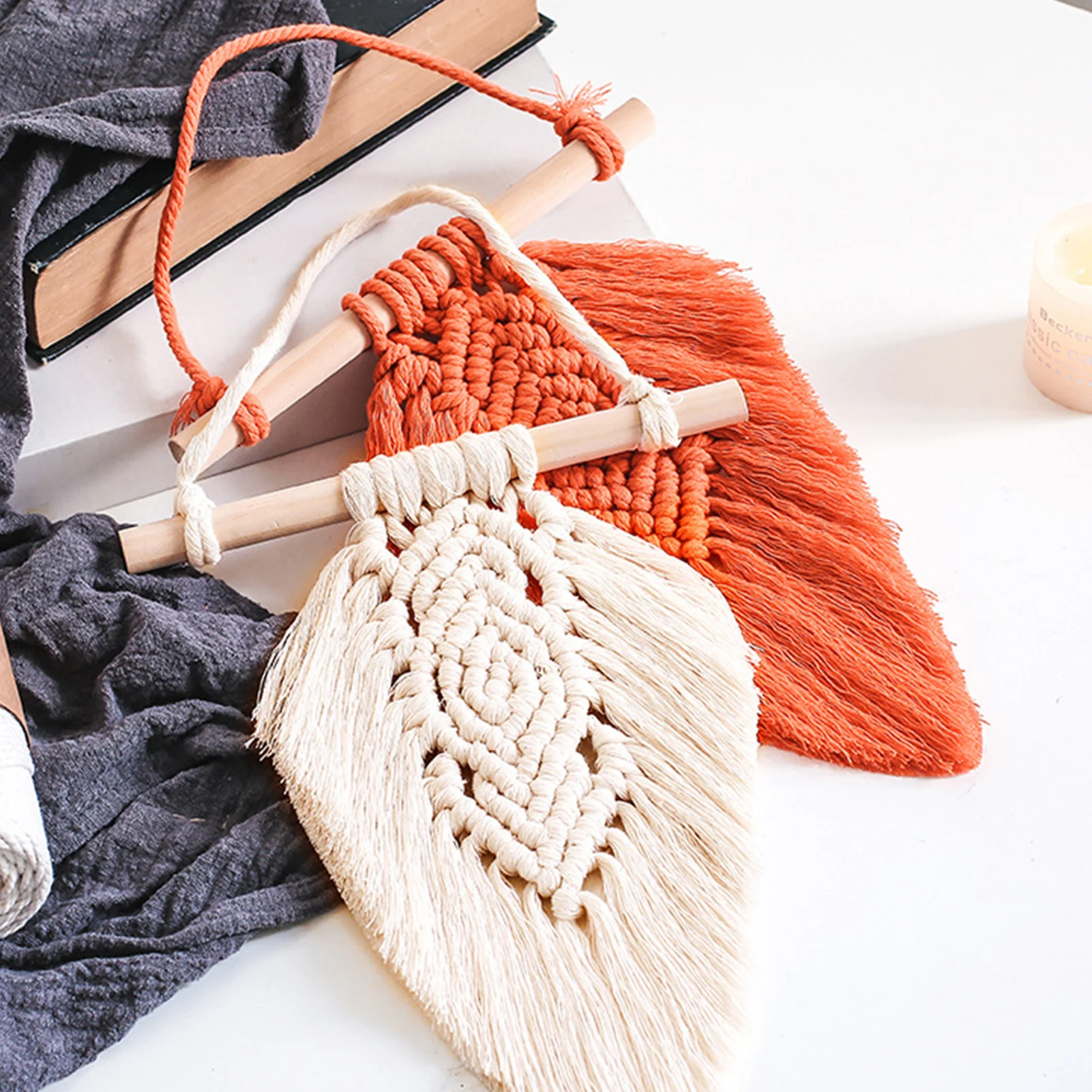 Макраме настенная подвеска ручной работы перо хлопковые тканые лист...