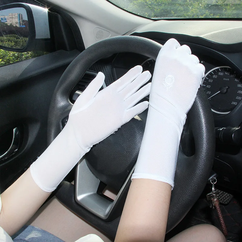 Перчатки женские солнцезащитные для вождения, тонкие белые эластичные митенки для церемоний с вышивкой, одна пара, лето 2020