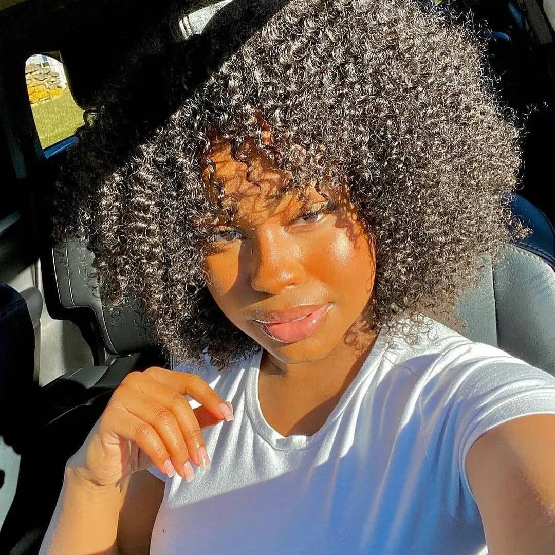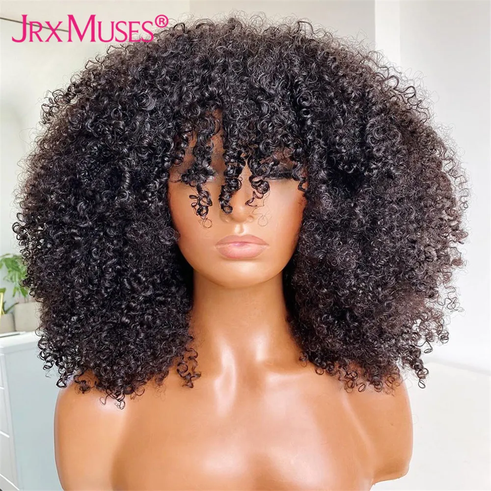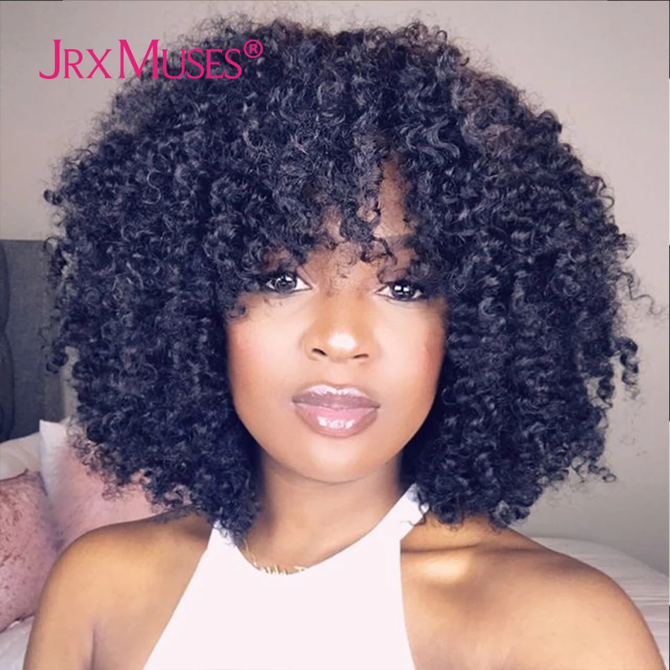200 плотный вьющийся парик с челкой, парики из человеческих волос, машинная работа, короткие волосы, парик, толстые афро кудрявые вьющиеся парики для черных женщин