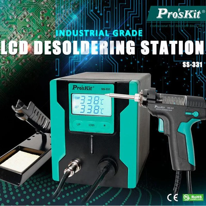 Новый выпуск 2019 Pro'sKit SS-331H ESD LCD цифровой электрический насос для демонтажа BGA вакуумная припоя присоска