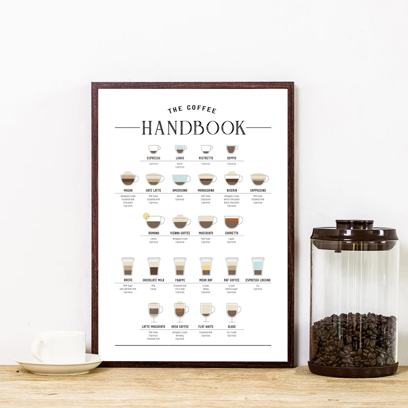 Постер с изображением гида для кофе, Картина на холсте, принты, подарок для любителей кофе, настенное украшение для кухни, книга для кофе, искусство для кафе, магазина, Настенная картина