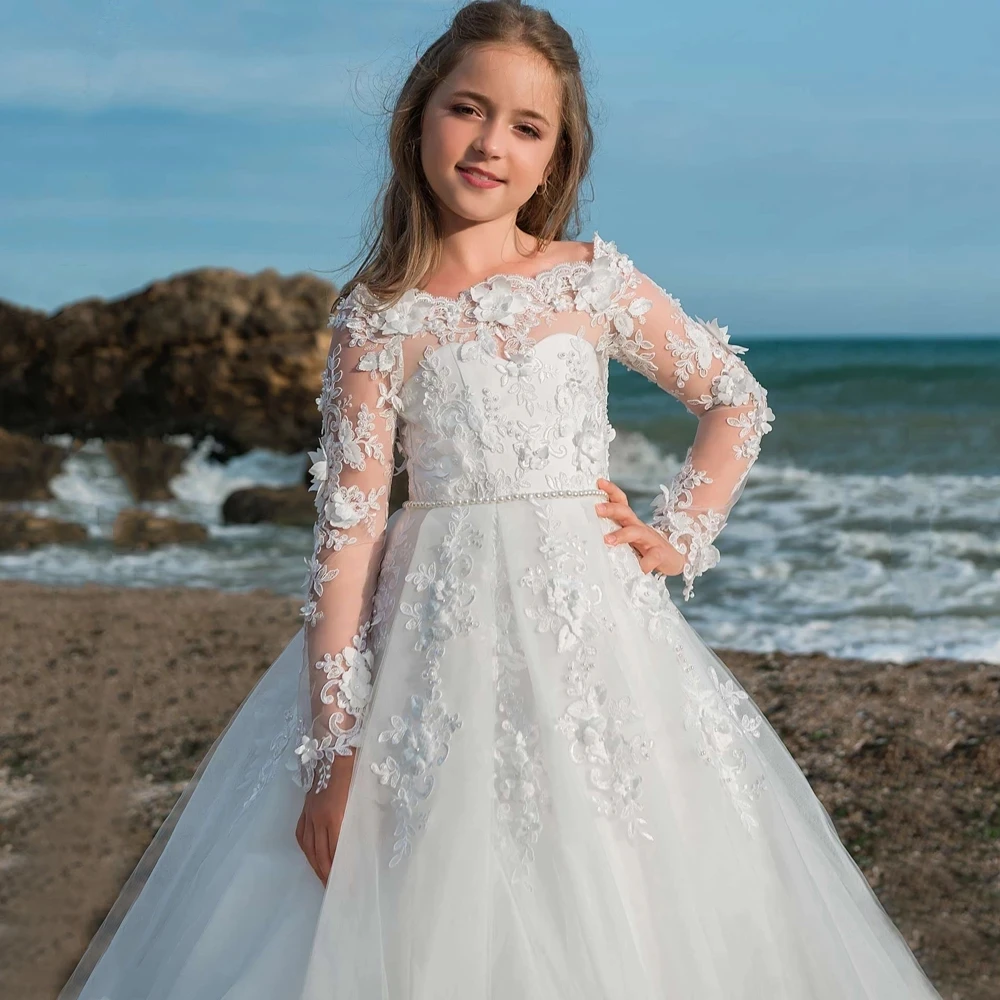 Новые платья с длинным рукавом для первого причастия, платья с круг...