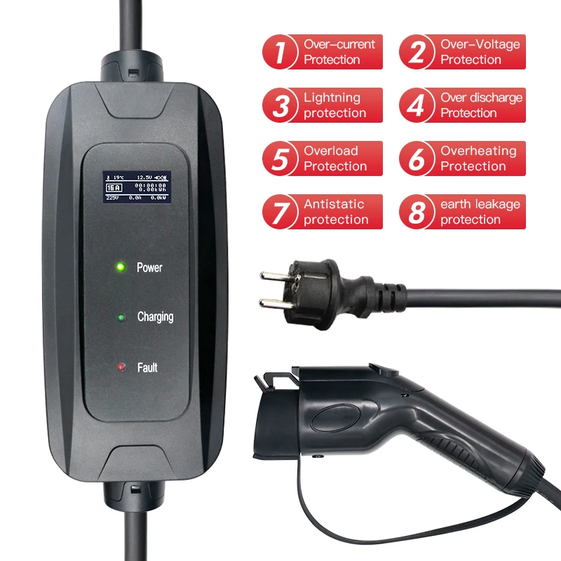 Портативное мобильное зарядное устройство для электромобилей 16 А Тип 2 Тип 1 IEC 62196-2 SAE1772 кабель для электромобиля 5 м штепсельная вилка Schuko для домашнего использования 220250 В EVSE