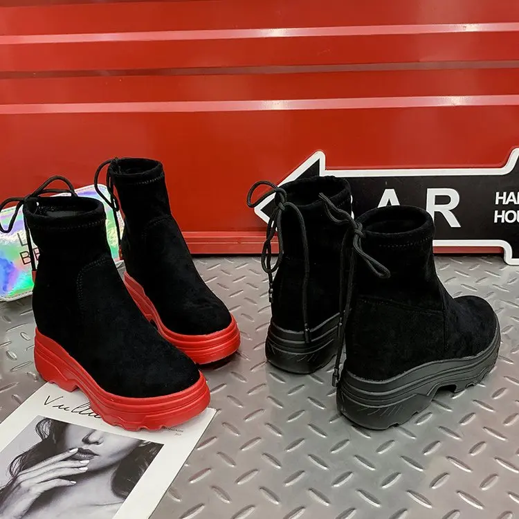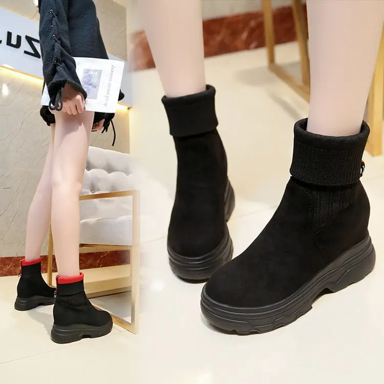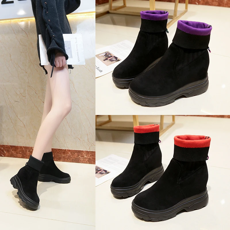 Fujinженские ботинки; Эластичные носки; Ботильоны на платформе; Нов...