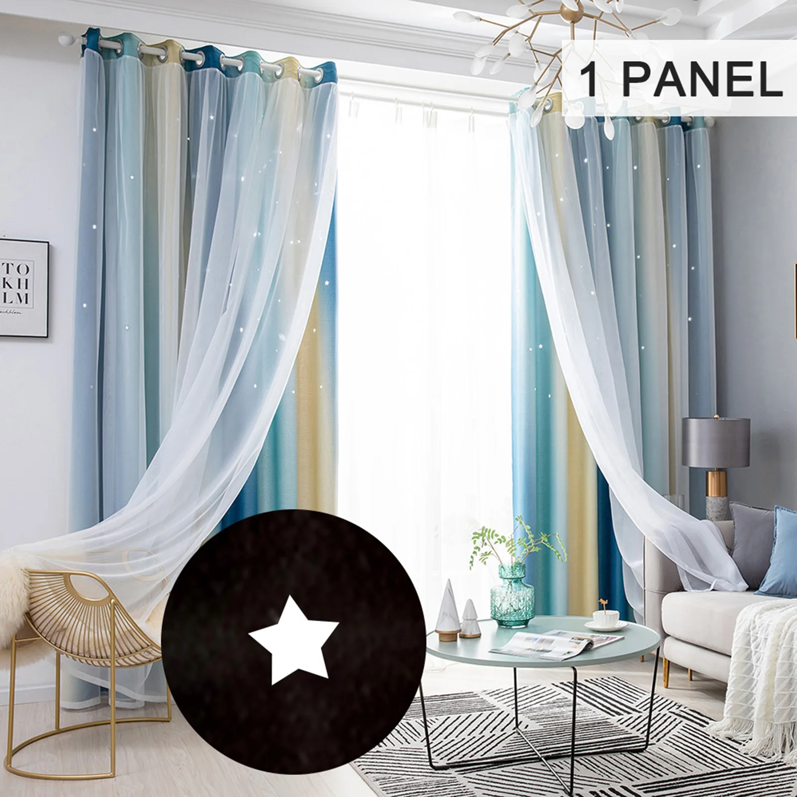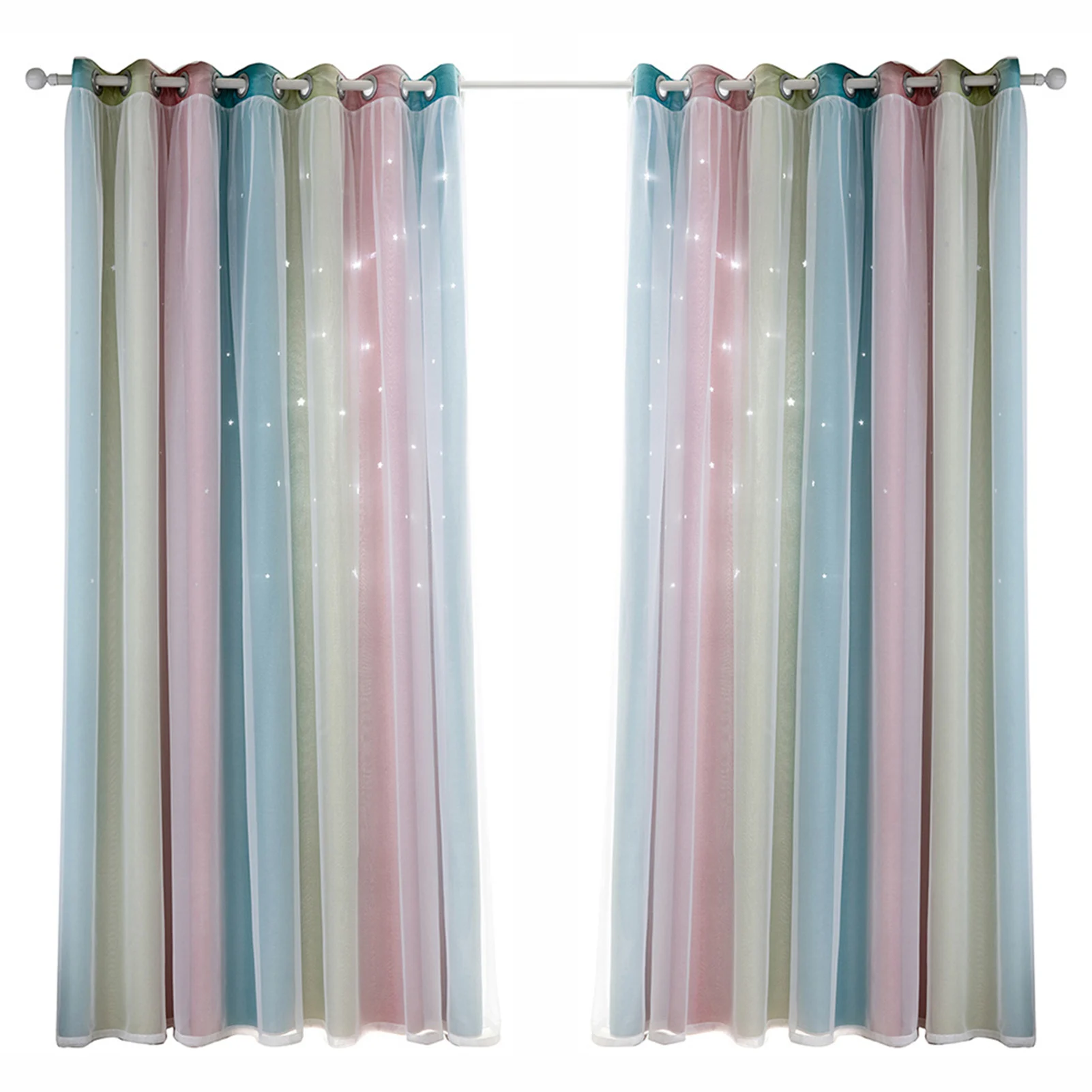 Занавески на окна, 1 шт., шторы со звездами ажурные, яркие, двухслойные, со звездами, для спальни, гостиной, занавески, домашний декор