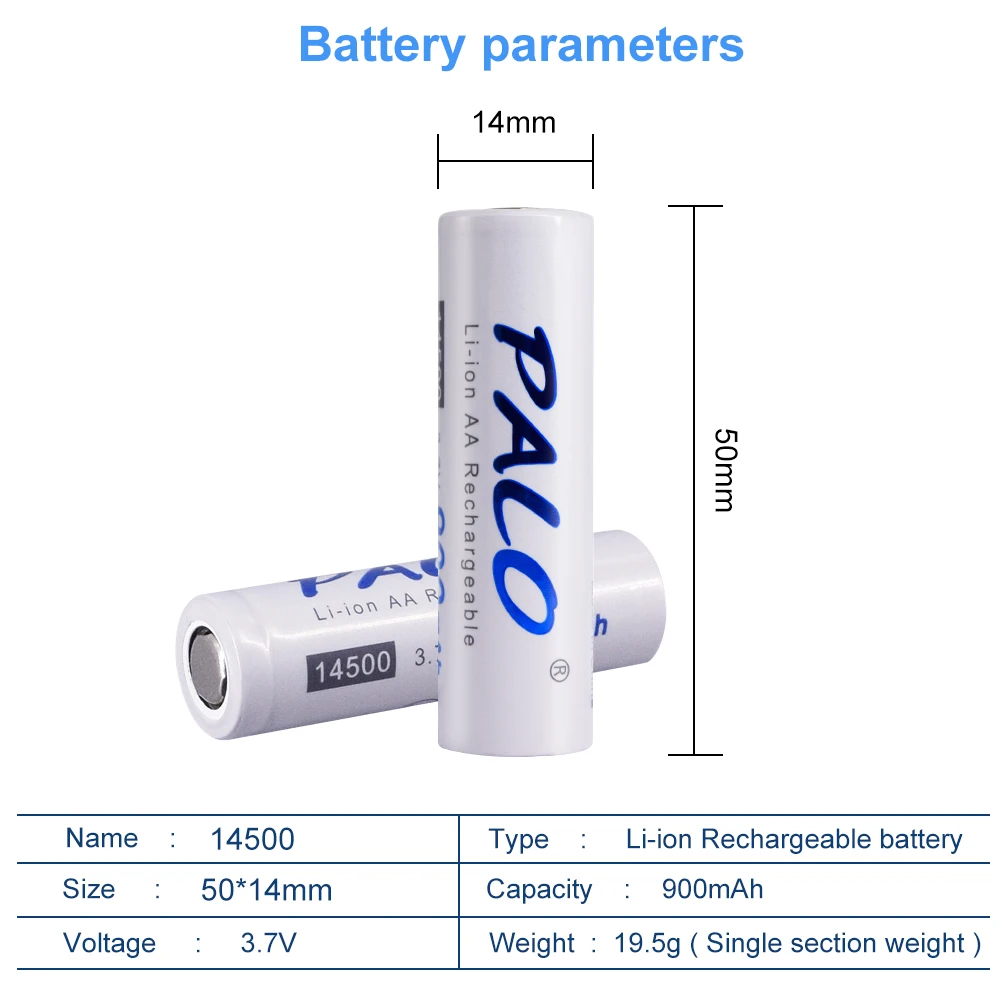 PALO 3,7 V 14500 900mAh литий-ионная аккумуляторная батарея 14500 A...