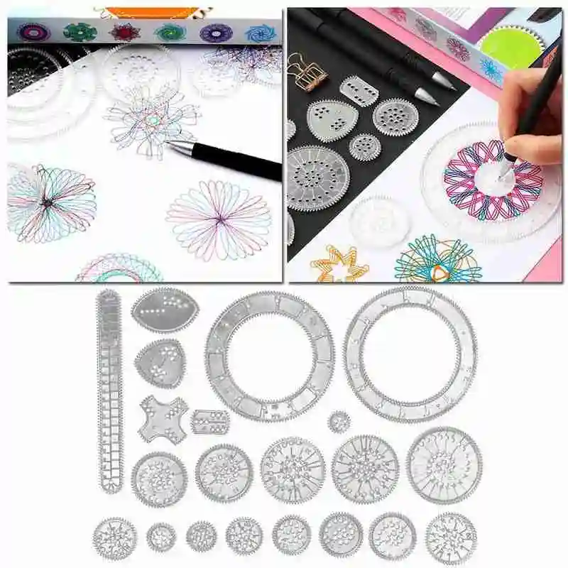 22 шт. креативный набор спирографа для рисования, сцепляющаяся швейная линейка Wanhua, инструменты для рисования, живопись, домашние принадлежности, аксессуары, колеса