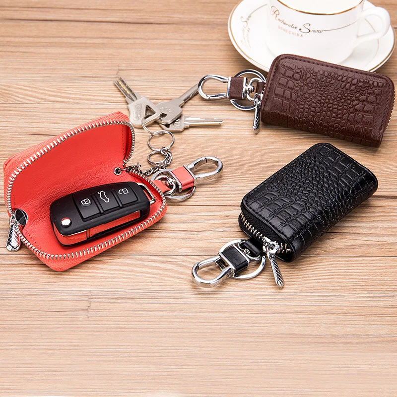 Мужской и Женский Повседневный Модный чехол с крокодиловым узором и двумя слоями из коровьей кожи для ключей от машины