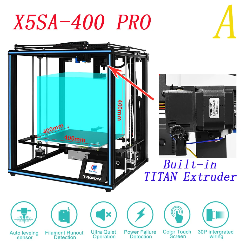 Алюминиевая платформа Tronxy X5SA 400 PRO, линейная направляющая с титановым Экструдером, автоматическое выравнивание, сенсорный экран, 3D-принтер, набор сделай сам