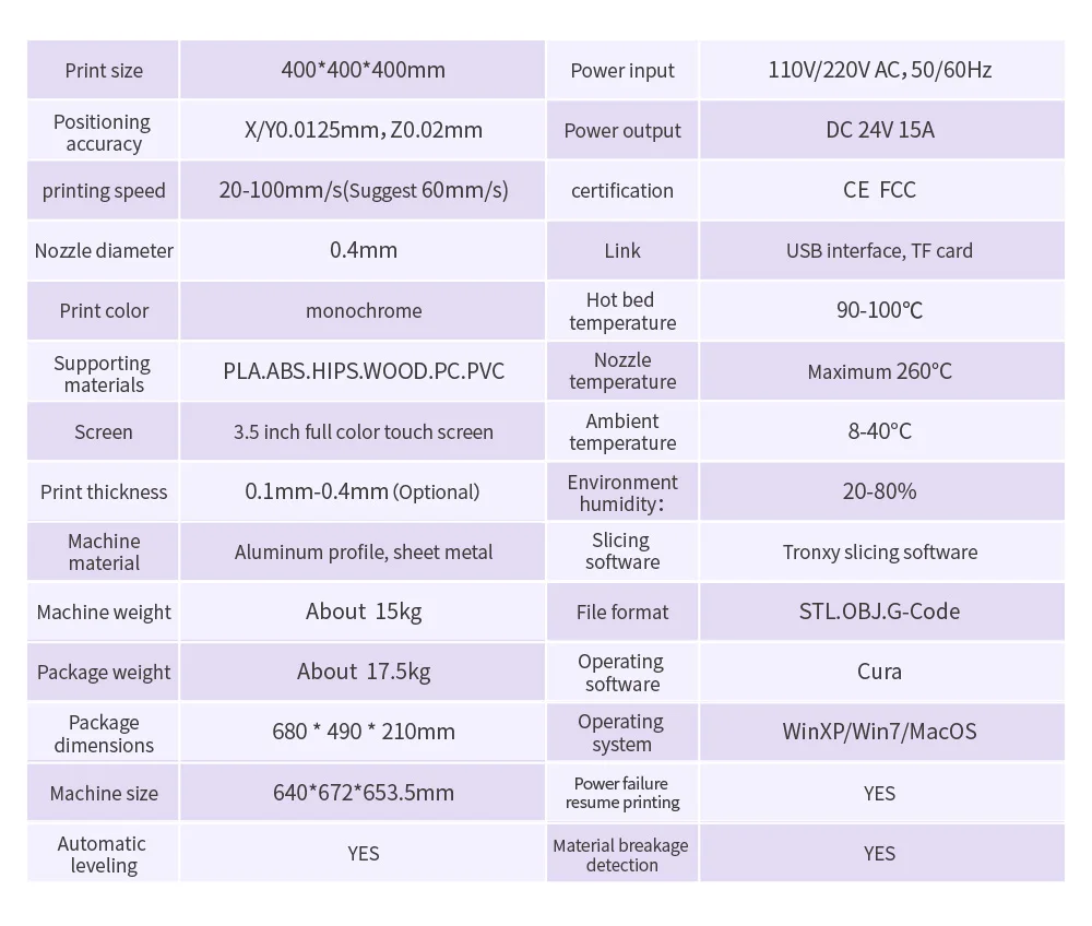 Можно напечатать все виды нити:Например:PLA, ABS, PETG, Wood, TPU и т. Д.
