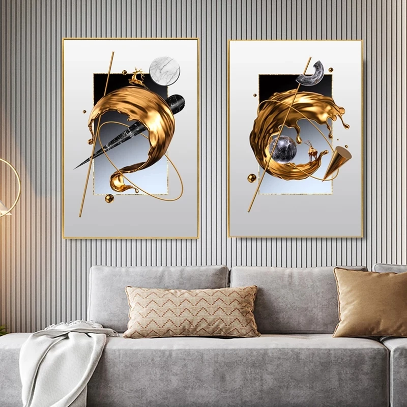 Абстрактная Золотая Картина на холсте в скандинавском стиле плакаты и принты Куадрос Современная Настенная картина для гостиной домашний декор