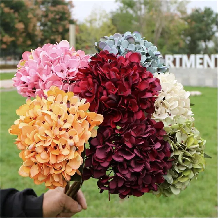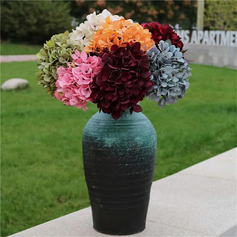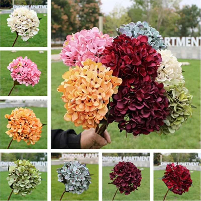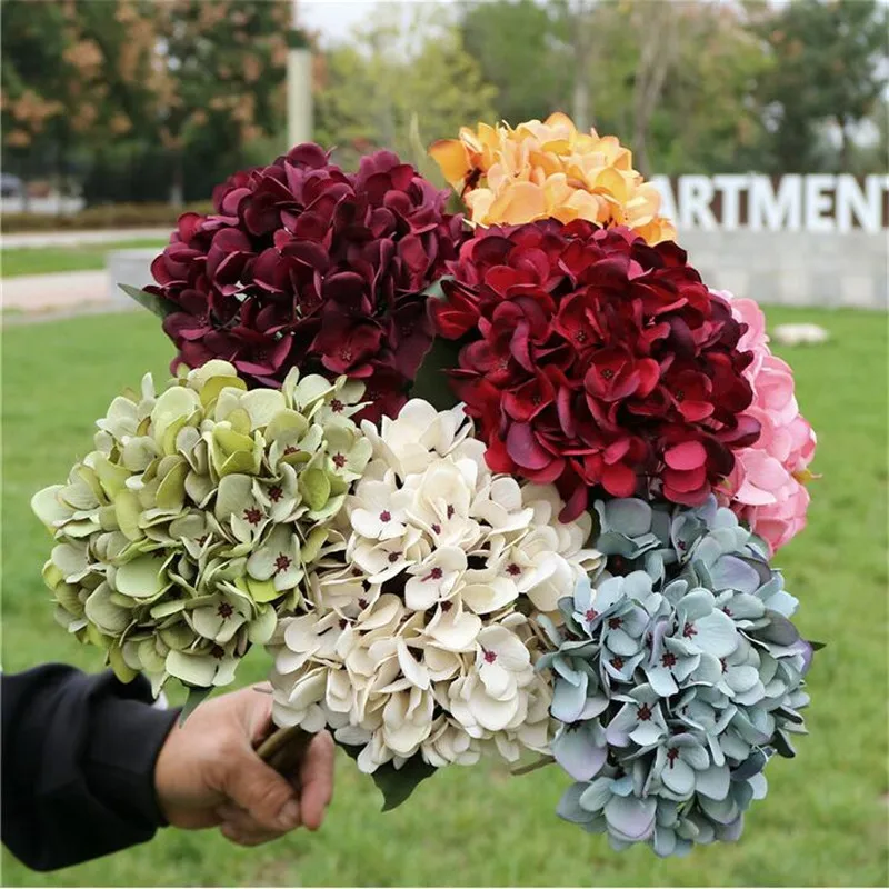 Одна шелковая Гортензия, цветок, ветка, искусственная картина маслом, эффект гортензии для свадьбы, центральный орнамент, украшение для дома, вечеринки, цветочный орнамент