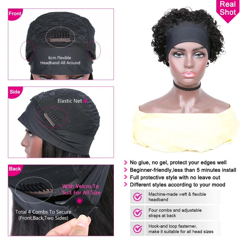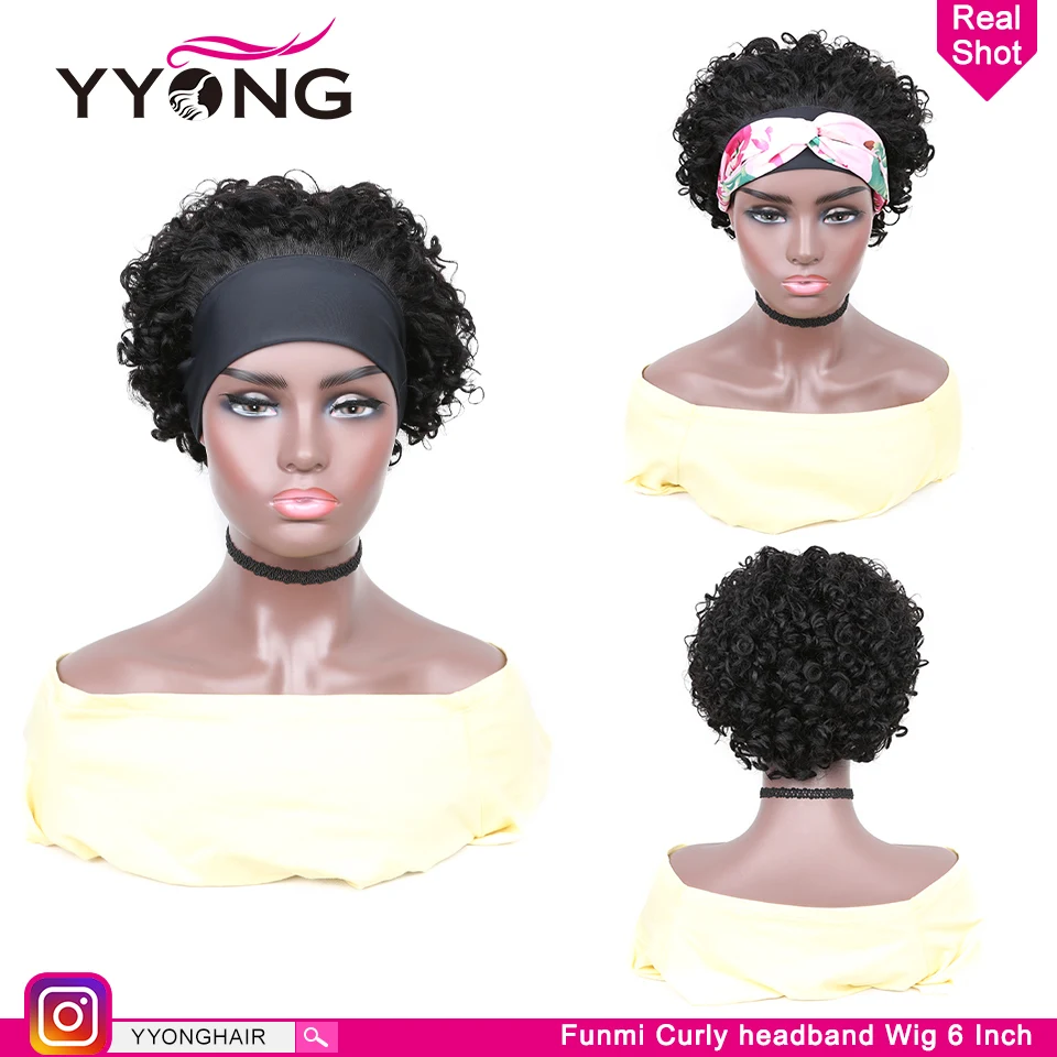 Головная повязка YYong для черных женщин, бразильский парик Funmi, кудрявые волосы, короткий парик, стрижка Пикси, Короткие парики из человеческих волос