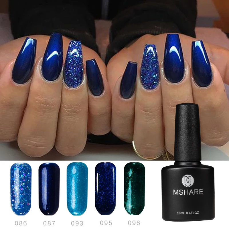 MSHARE с сияющими блестками и темно-синие Черный, серый цвет телесного цвета УФ гель для ногтей УФ Гель-лак для ногтей Vernis перманентность УФ Гель-лак