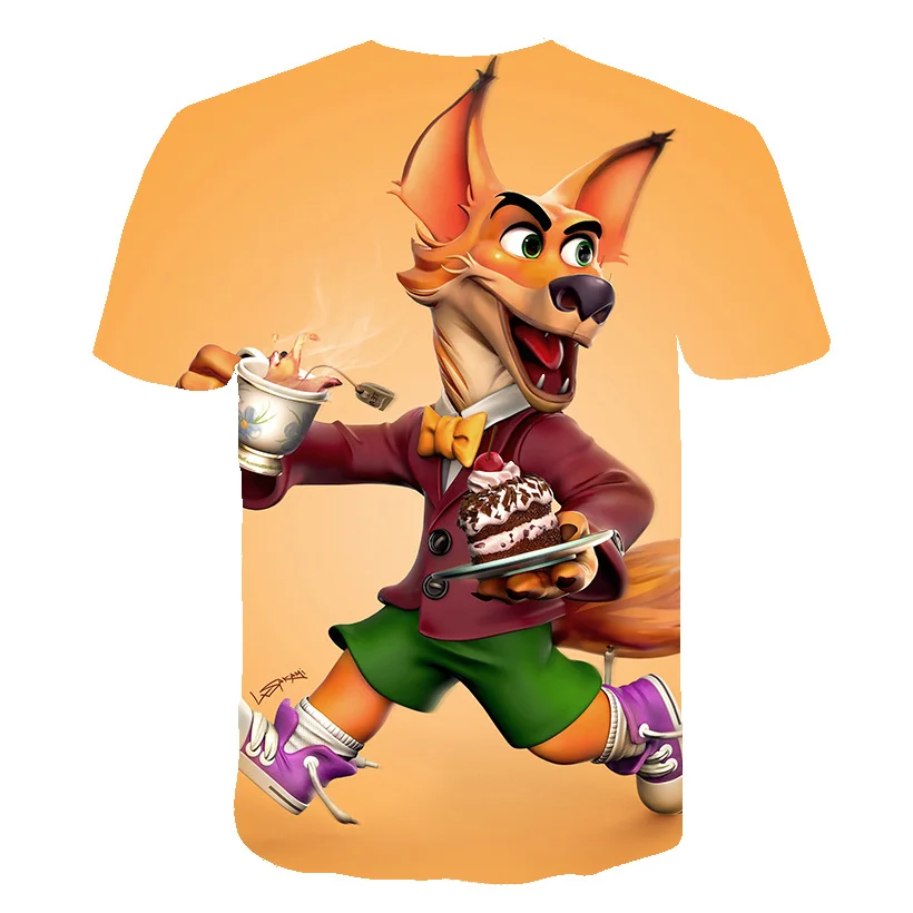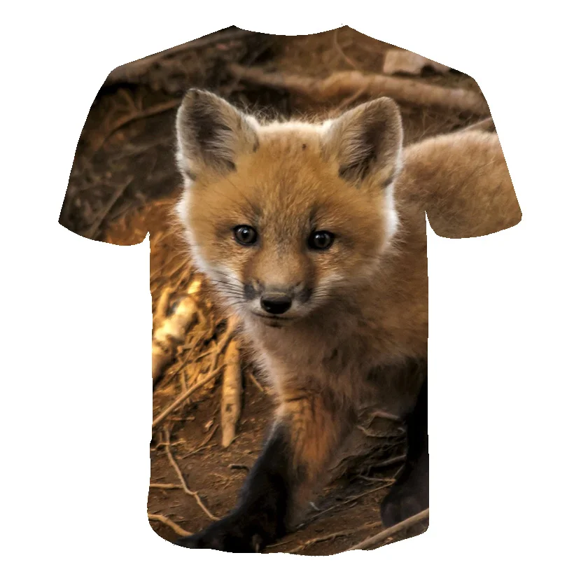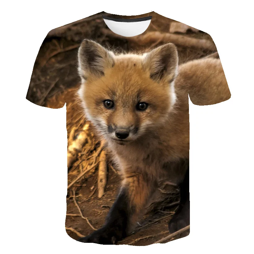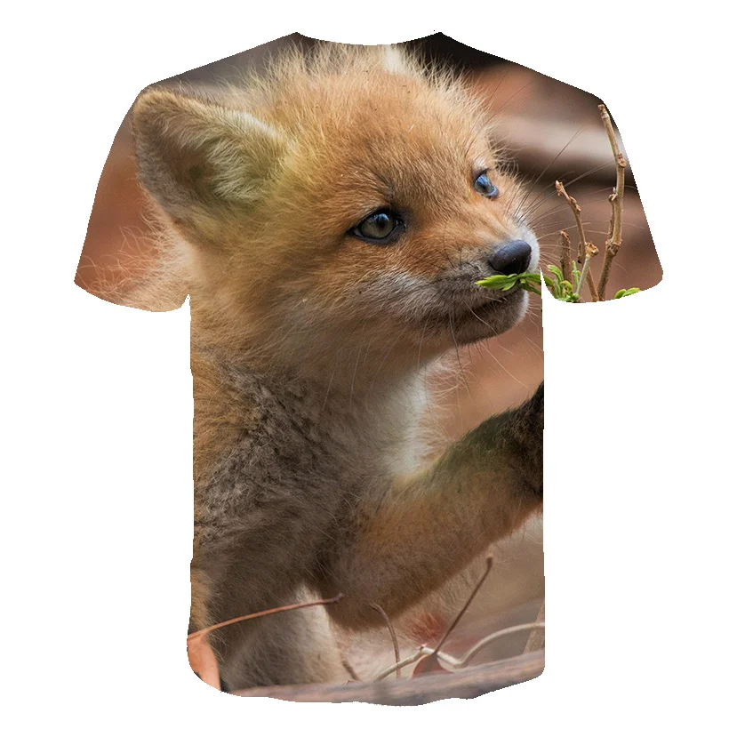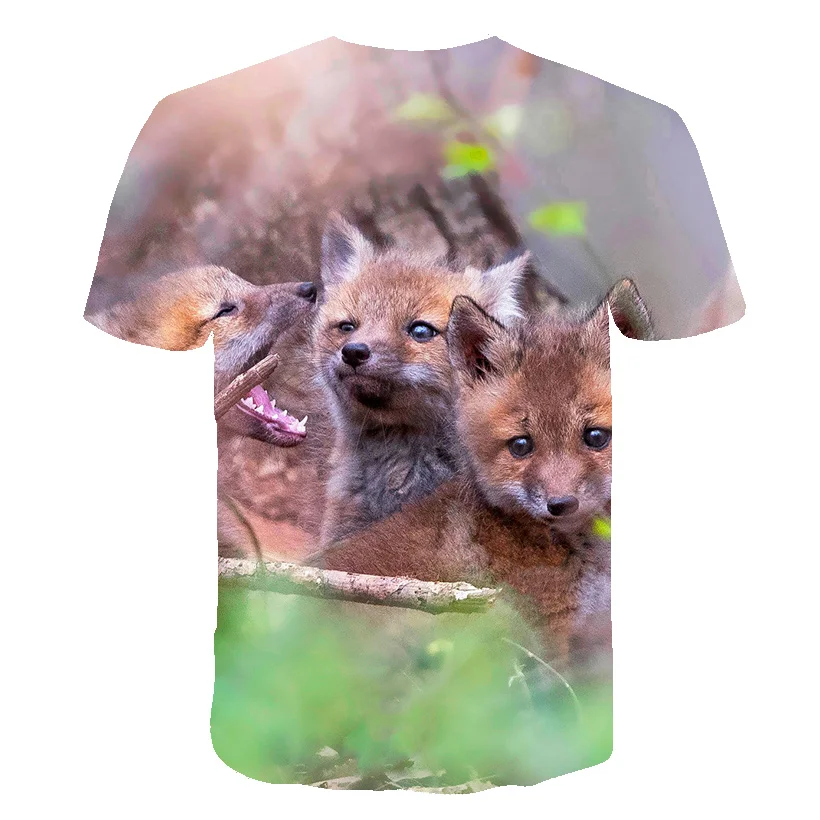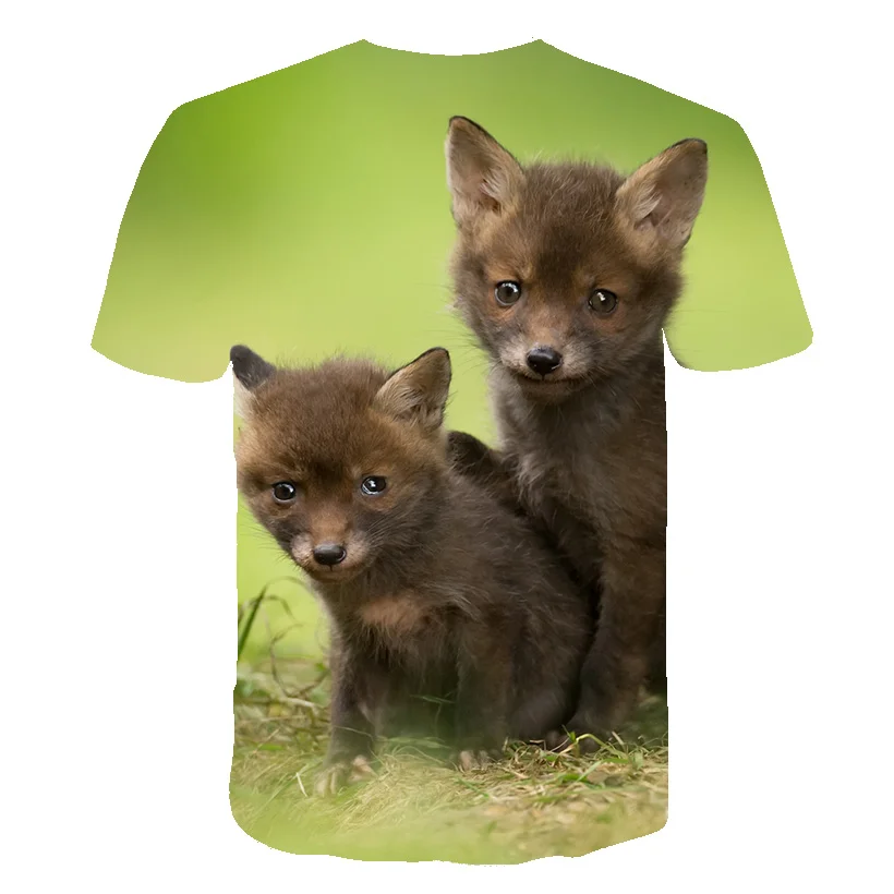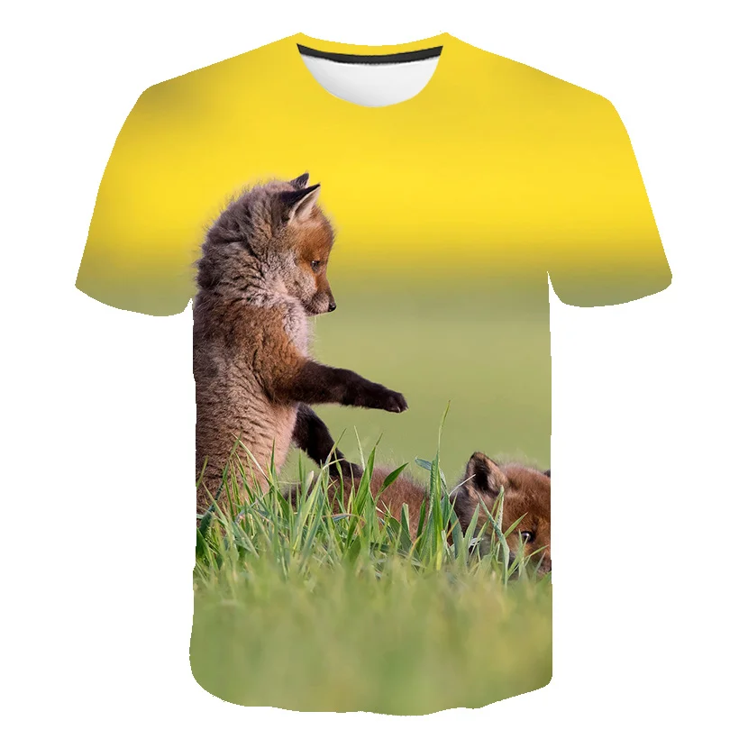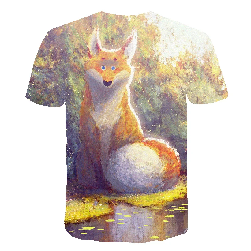 Лето 2021, мужская и женская футболка с 3D принтом, модный Повседневный дышащий Топ в стиле хип-хоп с короткими рукавами и изображением лисы из мультфильма для детей