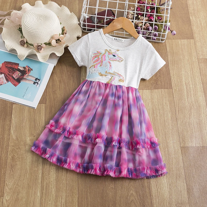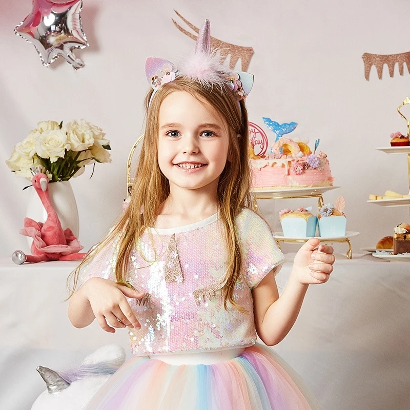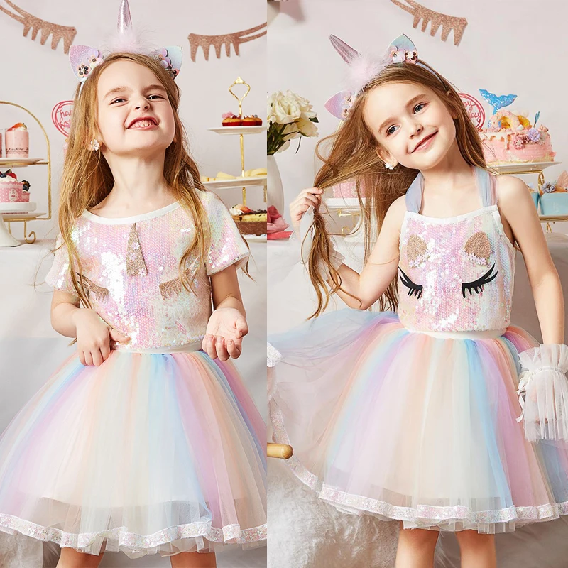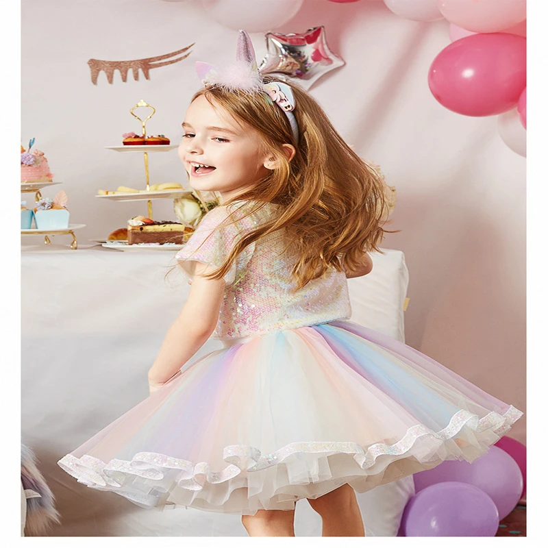 Блестками Единорог Платье для девочек 2021 летнее кружевное бальное платье Детская одежда Единорог вечерние платье принцессы костюм Для детей 38 лет