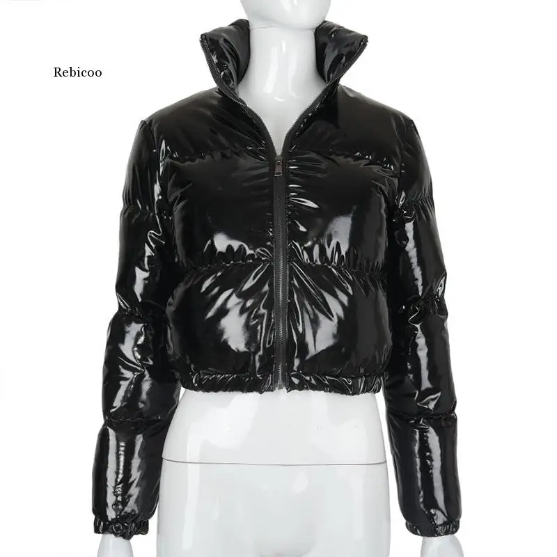 Женская обувь на каждый день; Модная одежда с длинными рукавами из искусственной кожи Теплая парка зимнее пальто Обрезанные яркие блестящие серебряные пузырь пальто куртка-пуховик Верхняя одежда пикантная обувь