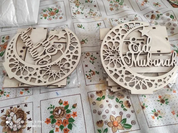 Деревянный кулон FENGRISE ИД Мубарак украшения на Рамадан для дома, исламский мусульманский декор для вечеринки, подарки на ИД, абайя аль-Адха Карим