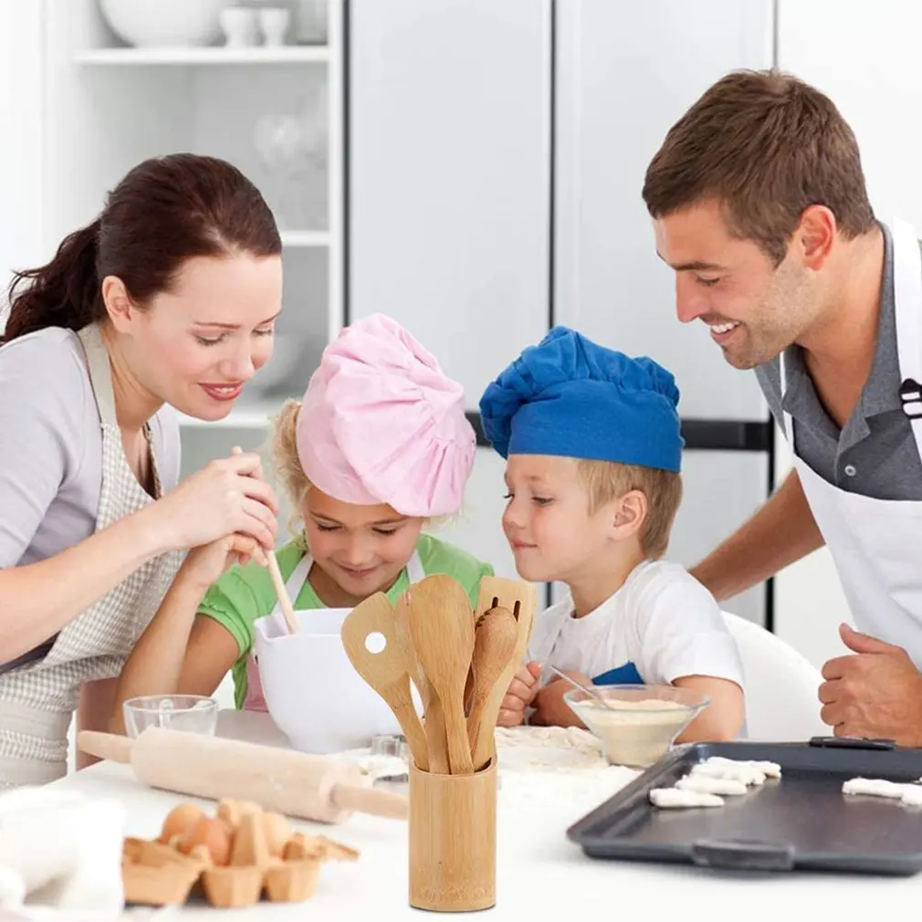 Набор деревянных бамбуковых кухонных принадлежностей, 8 шт.компл., набор кухонной утвари с держателем, деревянные ложки для приготовления пищи, отличный подарок