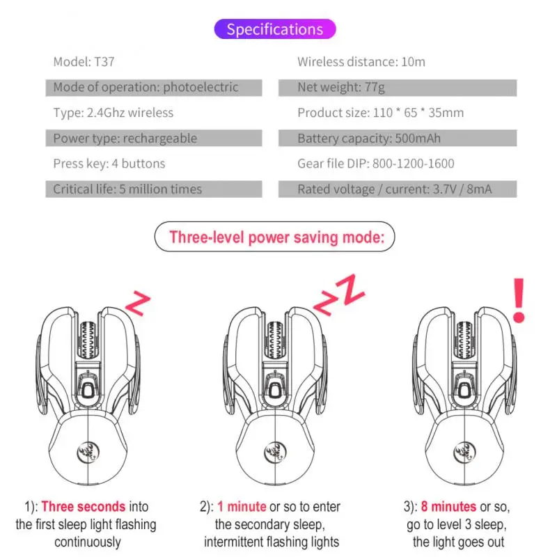 Мышь игровая T37 Бесшумная беспроводная, 2,4 ГГц, 1600 DPI