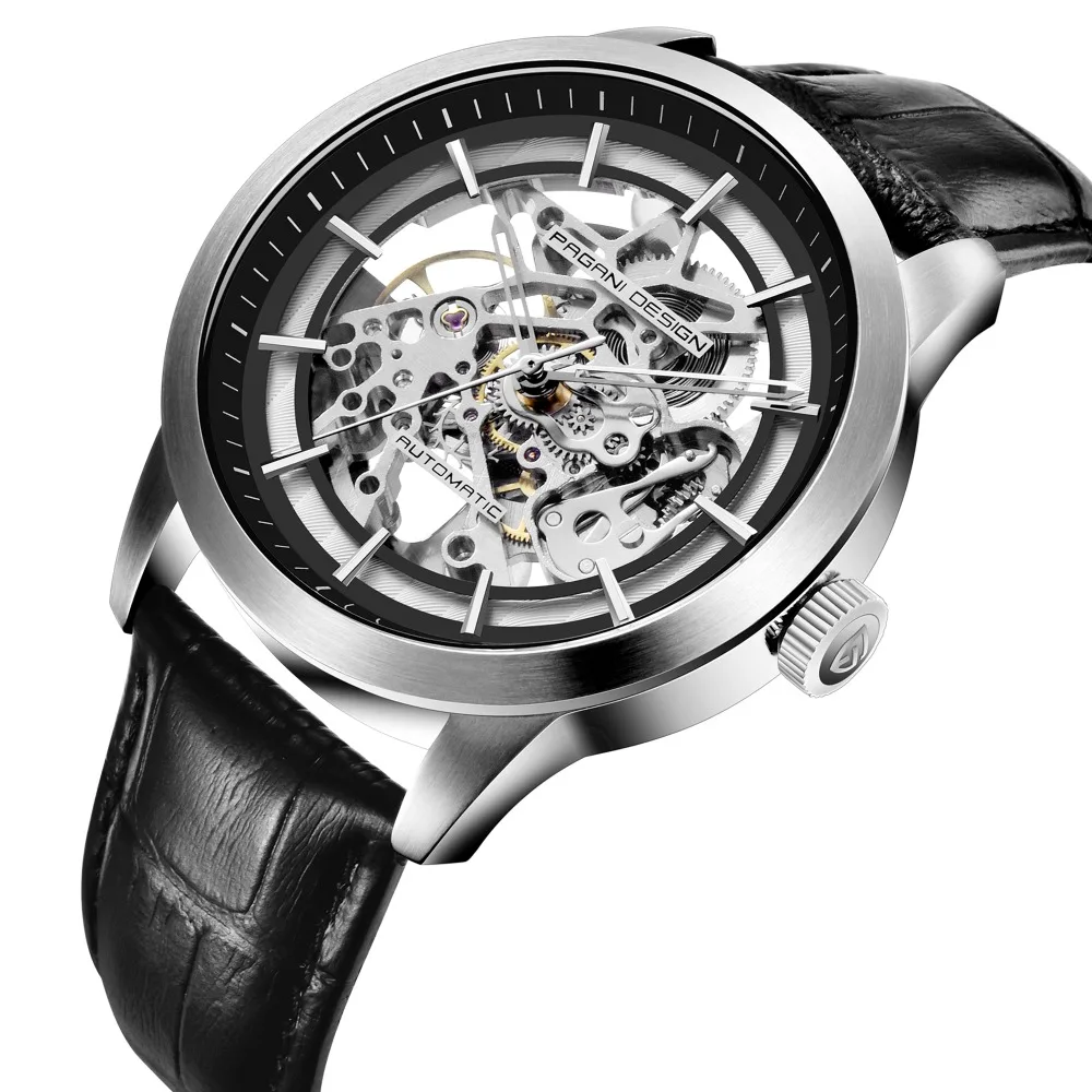 Часы-скелетоны PAGANI Мужские механические, с кожаным ремешком