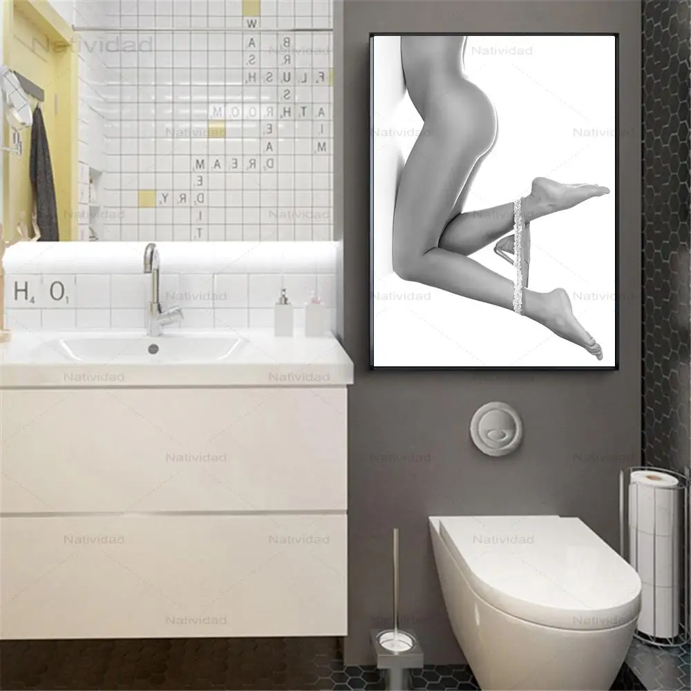 Современная Картина на холсте с длинными лапами для привлекательной леди, настенные художественные картины для украшения ванной комнаты, искусственные рисунки без рамки